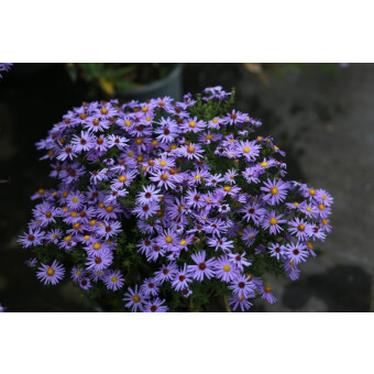 Ніжна та елегантна ‘Lady in Blue’ вирізняється дрібними квітками небесно-блакитного кольору з золотистою серединкою. Цвіте рясно й довго, утворюючи густу кулю заввишки до 50 см. Вона чудово підходить для посадки уздовж доріжок, на рабатках або в горщиках. Цей сорт приваблює метеликів і бджіл, що робить його ще більш живим доповненням осіннього саду. Витримує легкі заморозки, не втрачаючи декоративності, тому довго залишається окрасою навіть у прохолодну пору.