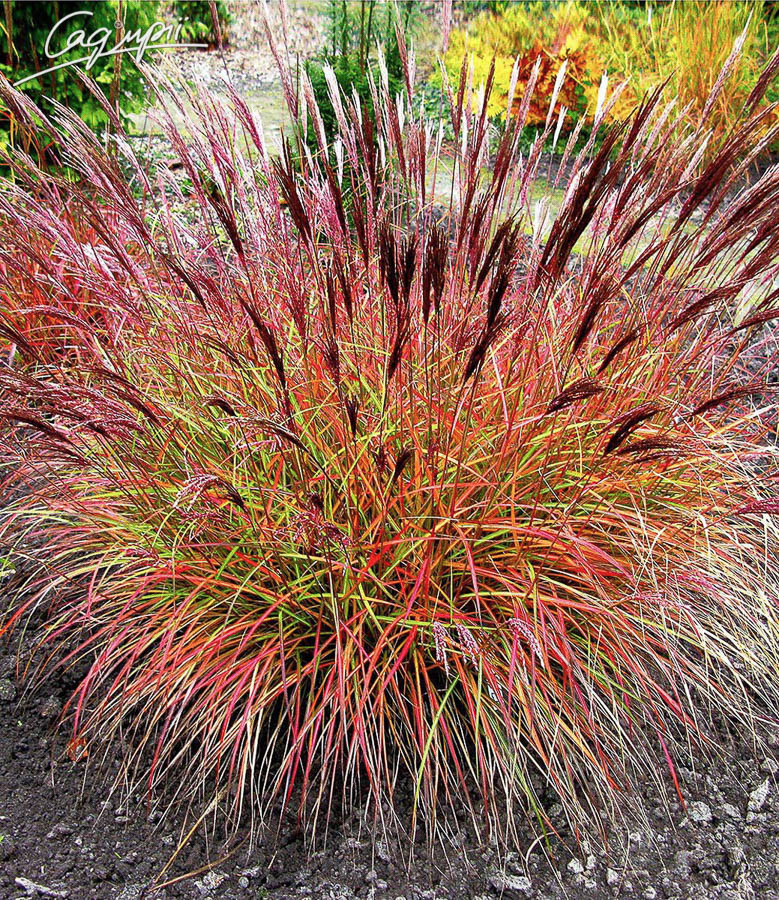 Волоті цього сорту - яскраві, з червонуватим відтінком, що поступово перлисто світлішають. Листя зелене, вузьке, а до осені набуває червоного кольору. Яскравими плямами цей міскантус виділяється на тлі осіннього золотистого листя. Висота рослини - близько 1,6–1,8 м. Добре працює як осінній акцент поруч з айстрами та хризантемами.