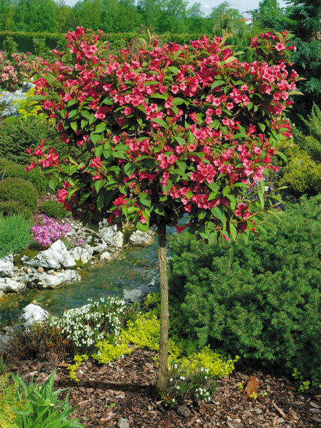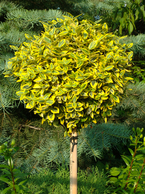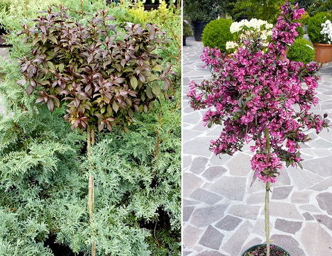 Останнім часом у моду входять листяні та хвойні рослини на невисоких штамбах. Це, як правило, невисокі квітучі або декоративно-листяні чагарники, ялівці та карликові сосни та ялини. Їхня головна особливість - рівний стовбур без єдиної гілки, який завершується пишною кроною. Таким чином створюється оригінальна форма піднесеного ялівцю або чагарника незвичайного вигляду.