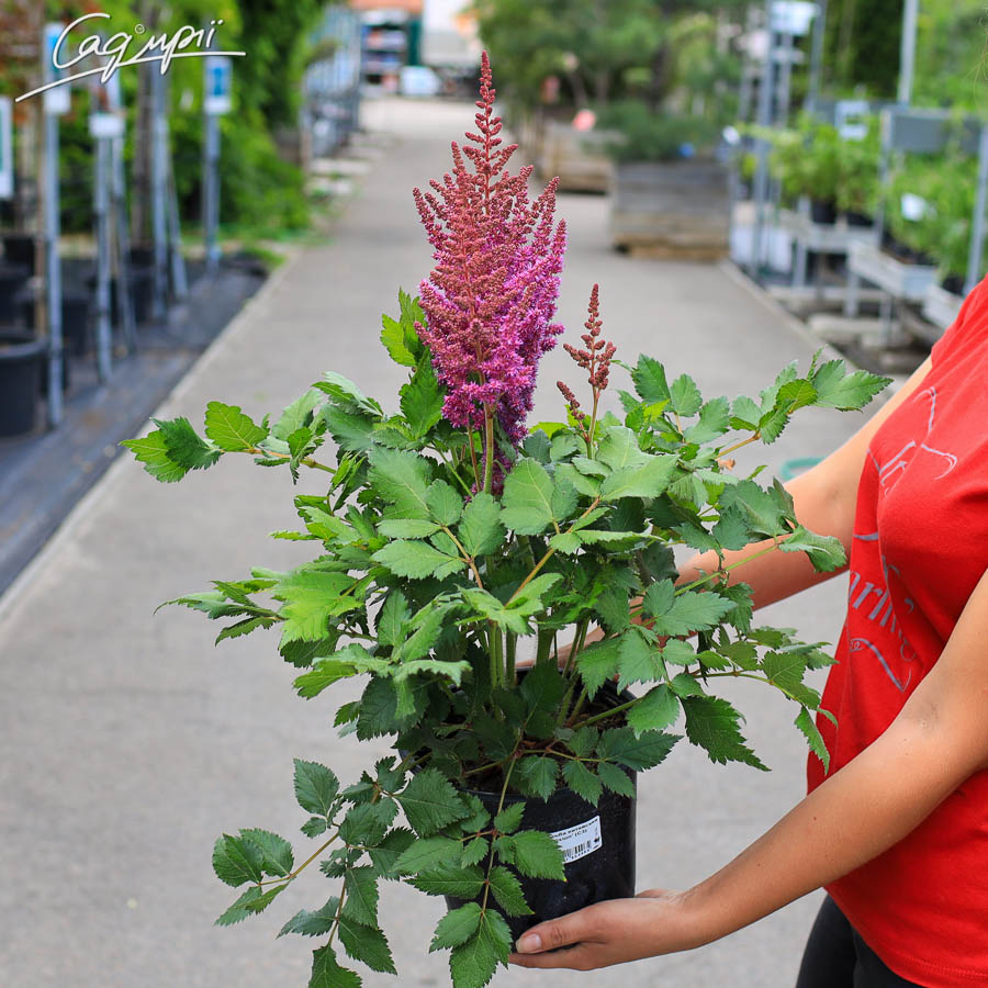 Астильба Китайська 'Vision®' - багаторічна трав'яниста рослина. Густо покритий листям кущ з темно-зеленим, з бронзовим відливом, блискучим листям. Висота рослини до 25-30см. Квітки яскраві, рожево-бузкового кольору в волотистому суцвітті. Цвіте в червні-липні. Астильба відрізняється високою зимостійкістю, практично не уражається хворобами і шкідниками. Може рости в місцях з досить високими грунтовими водами і переносить навіть застій води, а ось довгострокову посуху астильба не перенесе. Бідний грунт, відкритий сонцепік і відсутність дощів можуть погубити рослину. Посадка групою прикрасить квітник будь-якого стилю в тіні хвойних або листяних дерев, тим більше, що рослини добре себе почувають в загущеній посадці. Відмінно доповнить миксбордер біля фонтану або водойми. Традиційні сусіди астильби - хости, папороті.