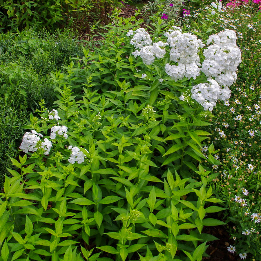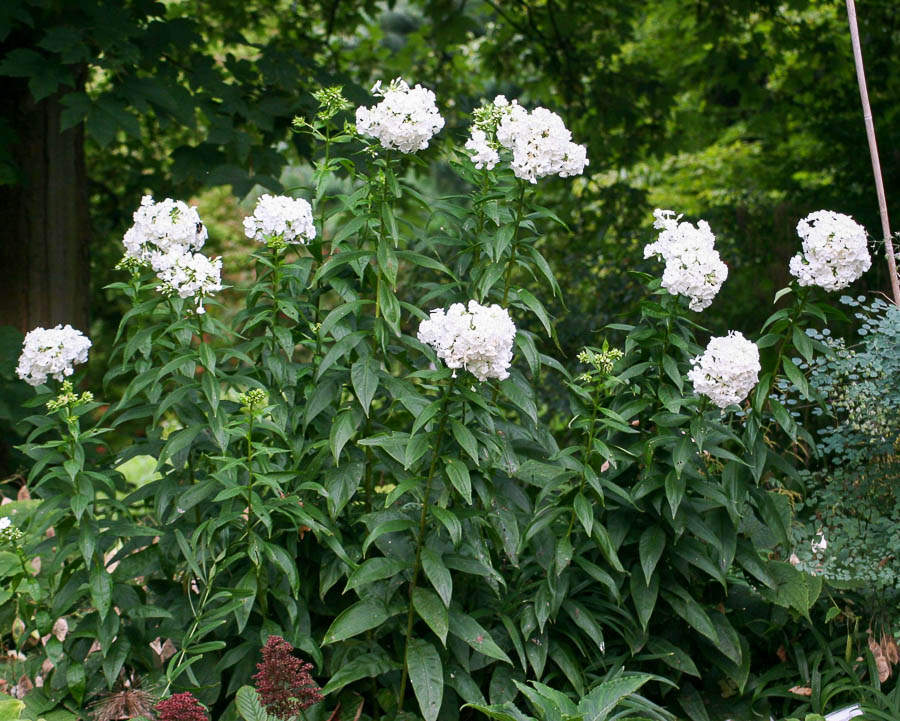 Найпопулярніший з різновидів флоксів - волотисті флокси. Це рясно і тривало квітучі багаторічники. Цвітуть в різні терміни - в залежності від сорту - з кінця червня до кінця вересня. Даний сорт - крупноквітковий, білого кольору, квіти з хвилястими краями, злегка перекривають один одного. Величина суцвіття - 25-30 см. Висота кущика 50 см, сорт дуже швидко розростається. Флоксам підходять сонячні місця, але допускається легке затінення. Грунти потрібні родючі, водо- і повітропроникні. Не допускається ні посушливе, ні перезволожене місце. Всього має бути в міру. В озелененні ці флокси застосовуються в міксбордерах, в садах природного і сільського стилю. А також в групових або одиночних посадках на тлі газону або кущів листяних або хвойних. Поєднуються в посадках з лілейниками, дзвіночками, з декоративними травами. Також висаджуються уздовж парканів, низькі сорти - у вигляді бордюру.