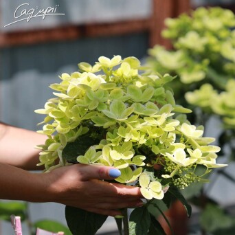 Новинка. Сорт цікавий перш за все дивним поєднанням відтінків під час цвітіння: пелюстки при розпусканні білі з жовто-салатовим відливом, потім на них з'являється рожеве "обрамлення", вкраплення світло-жовтого, світло-оливкового, а деякі квіти набувають ефектний вишневий відтінок. Всю цю "колірну феєрію" можна спостерігати одночасно на одному чагарнику. Суцвіття конусоподібні, до 20 см в діаметрі, складаються як з стерильних, так і з фертильних квіток. Час цвітіння - з липня до жовтня. Міцні пагони в дорослому віці досягають не більше 100-120 см в діаметрі, в ширину - не більше 100 см. Компактний габітус дозволяє використовувати сорт на невеликих ділянках і в контейнером озелененні. Підходить як для одиночної, так і масової посадки, контейнерного озеленення. Особливо доречною буде в малих садах. У міксбордерах прекрасно поєднується з лилейниками, бородатими ірисами або яскравими почвопокровними трояндами. Оригінальну композицію можна створити з гортензій волотистих і вологолюбних злаків - міскантусів, спартіни гребінчастою, різних видів осоки на тлі природних каменів... У "тінистому" саду добре поєднується з астильбами, хостами, папоротями.