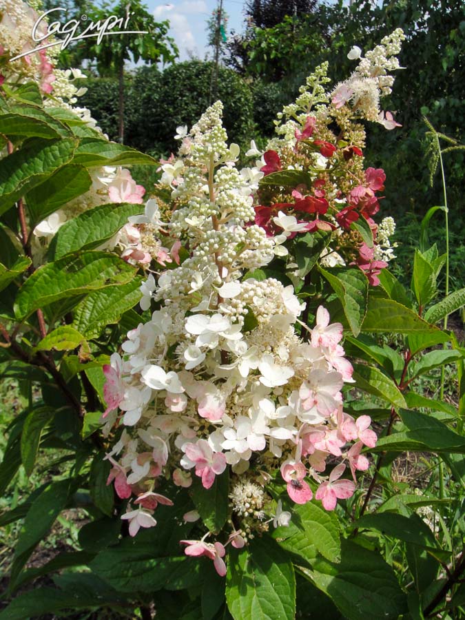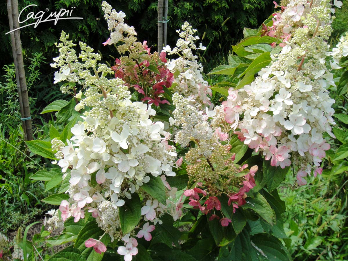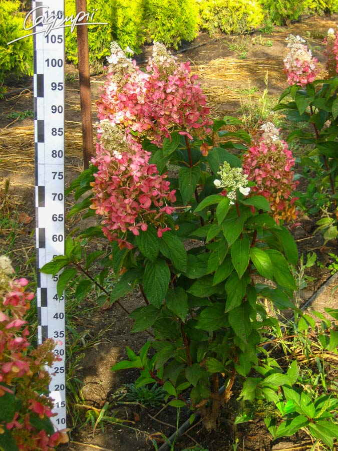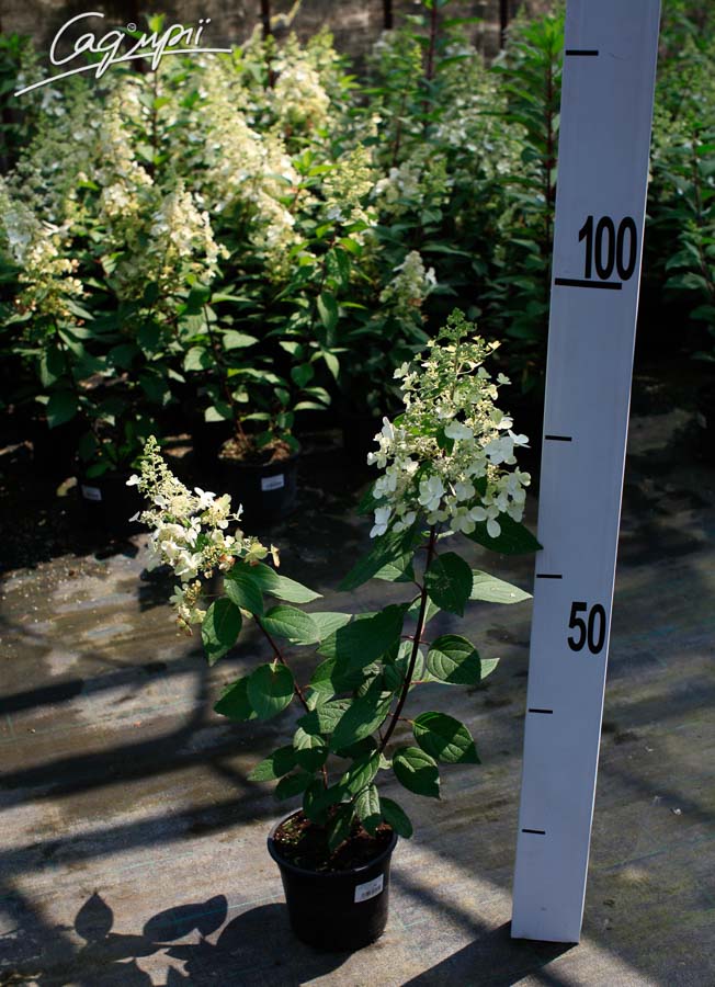 Листопадний чагарник, крона широко-округла, щільна, не розвалюється. Висота і ширина дорослої рослини становить 2 м. Квіти - конусоподібні волоті до 30 см завдовжки, велика кількість стерильних квіток. При розпусканні салатні, потім чисто-білі, потім набувають пурпурно-рожевий відтінок, з липня по вересень. Листки шорсткі, широкі, зелені, з вираженим червоним осіннім забарвленням. Не плодоносить. Не виносить вапняних грунтів. Свіжі, гумусні, родючі, проникні грунти, слабокислі до нейтральних, вологолюбні. Морозостійка. Віддає перевагу злегка притіненим і захищеним від вітру місцям розташування. Використовується в одиночних і групових посадках в садах і парках, рабатках, у внутрішніх дворах. Для рясного цвітіння у старих рослин необхідно щорічно вкорочувати на 2/3 довжини пагона.