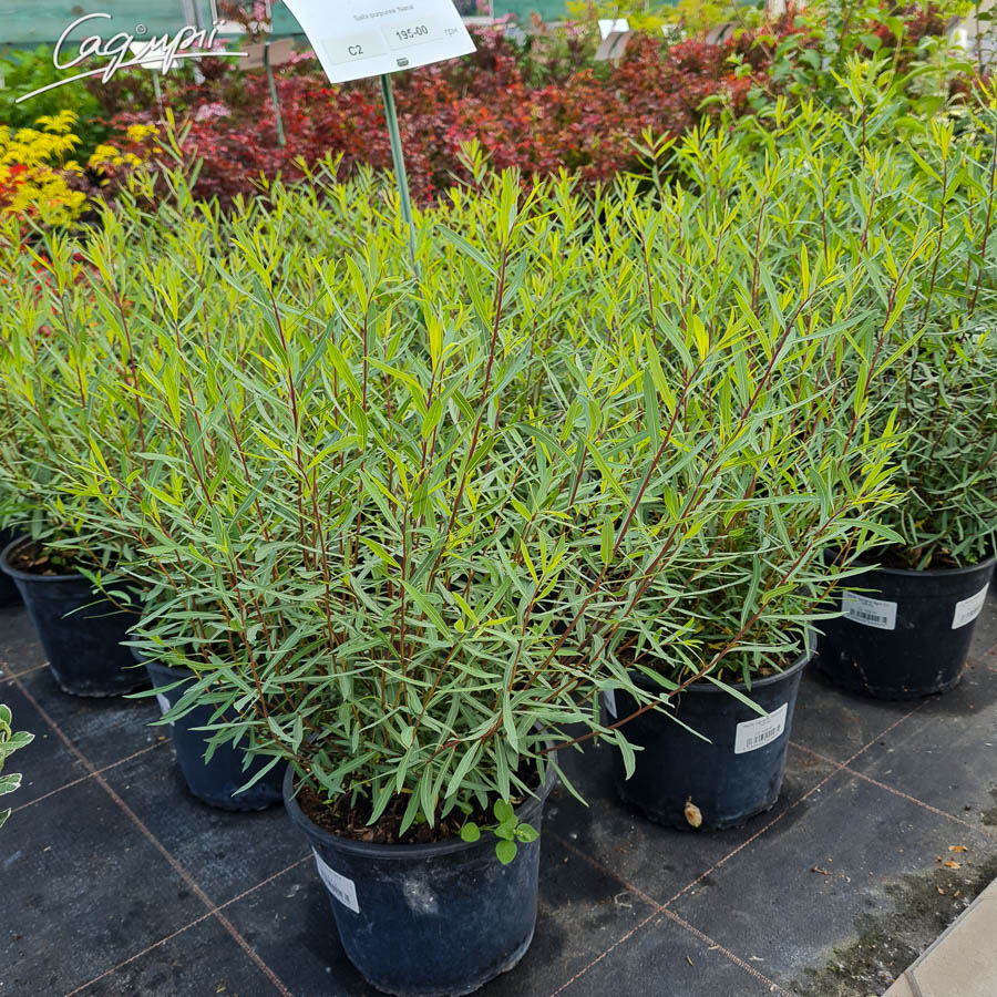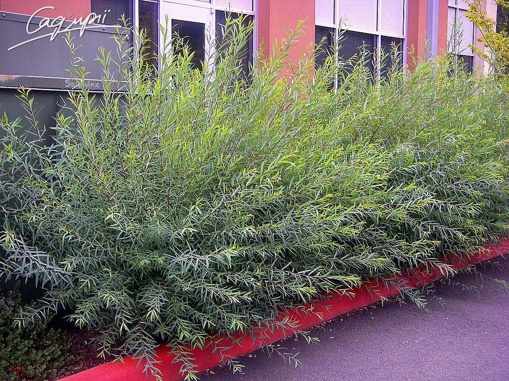 Формована куля. Круглий густий чагарник з численними крихкими пагонами червоно-коричневого кольору. Досягає висоти 2м. Листя ланцетоподібне, сріблясто-сіре. Невибагливий, добре зростає на помірно сухих і вологих грунтах, від середньокислих до лужних. Морозостійкий, в той же час добре переносить спеку. Потребує обрізки.