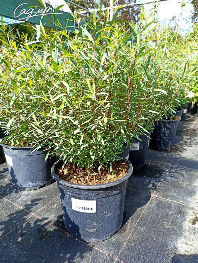 Ранньою весною потрібна санітарна обрізка пошкоджених, поламаних або потертих гілок. В цей же період проводять формуючу обрізку, обрізати можна до 50% довжини пагонів, надаючи необхідну форму. Прекрасно переносить стрижку, відмінно відростає. Старі рослини в ранньовесняний період можна омолоджувати - обрізати до пня. У другій половині літа формуючу обрізку можна повторити. Верба - ідеальна рослина для низькорослого бордюрного живоплоту. Особливу увагу потрібно приділити перші 2 роки після посадки. Початкова обрізка дуже важлива для будь-якого живоплоту, так як приріст повинен бути розподілений рівномірно і внизу і нагорі. Для цієї рослини необхідно вкоротити приблизно на 1/3 негайно після посадки. Це не тільки стимулює розвиток щільної, густої крони, але і допомагає окремим рослинам проростати одна в одну, щоб сформувати єдиний масив. З середини до кінця літа в міру розвитку нових пагонів необхідно видаляти точки росту надмірно сильних рослин. Також потрібно обрізати пагони, що виростають під прямим кутом до огорожі, щоб створити густу, правильну крону. Після обрізки потрібно підгодувати рослини, обробити фунгіцидом.