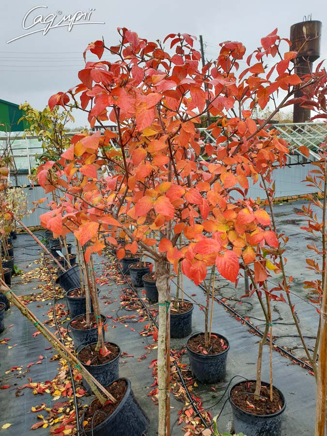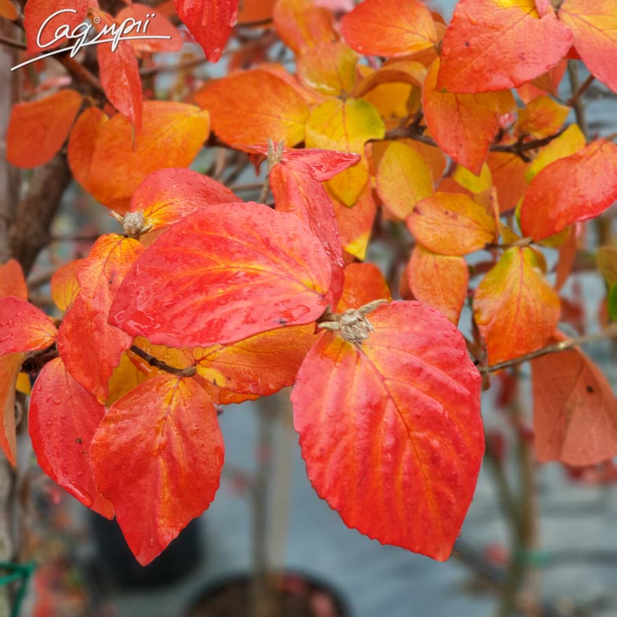Вічнозелений чагарник, в молодості широко-розлогий або округлий, з віком з трохи асиметричною, пухкою, іноді компактною кроною і дугоподібно звисаючими пагонами; росте повільно. У дорослому віці досягає 2-3,5 м як заввишки, так і шириною. Цвітіння: рожеві бутони, квітки білі, з дуже сильним приємним, солодкуватим запахом, зібрані в кулясті суцвіття; цвіте в квітні-травні, повторне цвітіння настає восени. Листя не опадає, еліптичне до яйцевидного, глянцеве, темно-зелене, знизу сіро-зелене, повстяне, восени частково жовте, помаранчеве і червоне, 4-7 см завдовжки. Плоди кістянки, непоказні. Росте на помірно сухих, родючих, добре дренованих садових грунтах, слабо-кислі грунти, не виносить вапняних. Віддає перевагу злегка притіненим місцям. Використовується як солітер в садах біля будинку, парках, рабатках, у внутрішніх дворах. Перші три роки тримати грунт відкритим, обрізка не рекомендується. В суворі зими може підмерзати. Переносить забруднення повітря, стійка до спеки і міських умов.