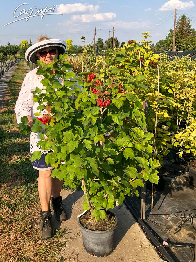 У рік посадки рослину частіше поливають, тому що коренева система компактна і не здатна самостійно споживати вологу і поживні речовини з грунту. Рослина вологолюбна. Погано переносить періоди літньої посухи і спеки, на занадто сухих грунтах часто уражається чорною попелицею, а в зимовий період на рослині зимують паразити. Розпушування проводять разом з прополкою. Для того, щоб волога випаровувалася з поверхні землі повільніше, потрібно зробити мульчування торфом, або торфо - компостом (шар 7-10 см), тоді полив можна буде проводити рідше - при підсиханні верхнього шару землі. Весняну (квітень – травень), підгодівлю можна виробляти нітроамофоскою (30-40 г/м2), комплексними мінеральними добривами, або органічним добривом Біотерра з розрахунку 100-300 г/м2 грунту. Восени (жовтень) необхідно внести калійно-фосфорні добрива. При ураженні рослини грибковими захворюваннями, необхідна обробка фунгіцидами (Ордан, Фундазол). Профілактична обробка проти грибкових захворювань - в квітні бордоською рідиною 1%. При ураженні рослин шкідниками (Калинова попелиця, жук і личинка калинового листоїда, комоподібна щитівка), необхідно обробити інсектицидами (Актара, Конфідор, Актеллік). Обробку провести двічі з інтервалом 7-10 днів.