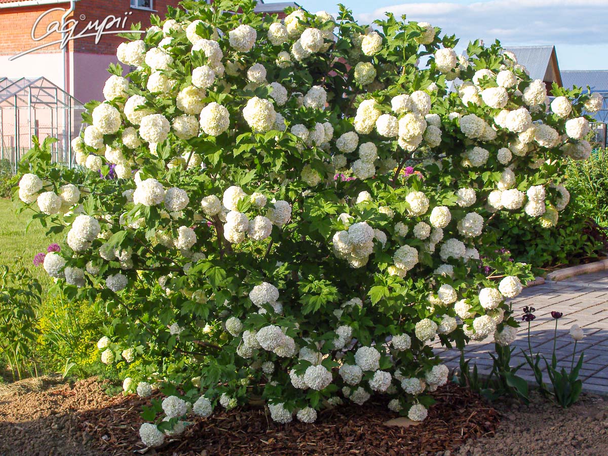 У рік посадки рослину частіше поливають, тому що коренева система компактна і не здатна самостійно споживати вологу і поживні речовини з грунту. Рослина вологолюбна. Погано переносить періоди літньої посухи і спеки, на занадто сухих грунтах часто уражається чорною попелицею, а в зимовий період на рослині зимують паразити. Розпушування проводять разом з прополкою. Для того, щоб волога випаровувалася з поверхні землі повільніше, потрібно зробити мульчування торфом, або торфо - компостом (шар 7-10 см), тоді полив можна буде проводити рідше - при підсиханні верхнього шару землі. Весняну (квітень – травень), підгодівлю можна проводити нітроамофоскою (30-40 г/м2), комплексними мінеральними добривами, або органічним добривом Біотерра з розрахунку 100-300 г/м2 грунту. Восени (жовтень) необхідно внести калійно-фосфорні добрива. При ураженні рослини грибковими захворюваннями, необхідна обробка фунгіцидами (Ордан, Фундазол). Профілактична обробка проти грибкових захворювань - в квітні бордоською рідиною 1%. При ураженні рослин шкідниками (Калинова попелиця, жук і личинка калинового листоїда, запятовідная щитівка), необхідно обробити інсектицидами (Актара, Конфідор, Актеллік). Обробку провести двічі з інтервалом 7-10 днів.