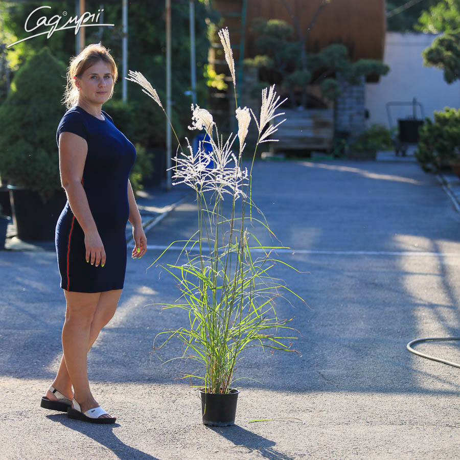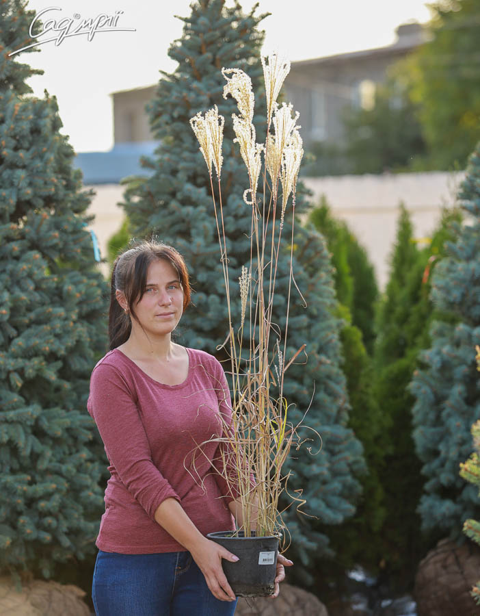 Дуже декоративний сорт, висота рослини – до 2м. Цвіте у серпні-вересні, квітки темно-червоні, при відцвітанні сріблясто-рожеві, зібрані у віялоподібні волоті. Листя восени набуває помаранчевого забарвлення. Віддає перевагу суглинистому грунту, сонячним місцям. Використовується окремо або групами у міксбордерах, рокаріях, біля газонів. Красиві суцвіття міскантусу використовують при створенні сухих флористичних композицій. Відмінна рослина для утворення лаштунків. Також використовується для створення композицій у контейнерах.