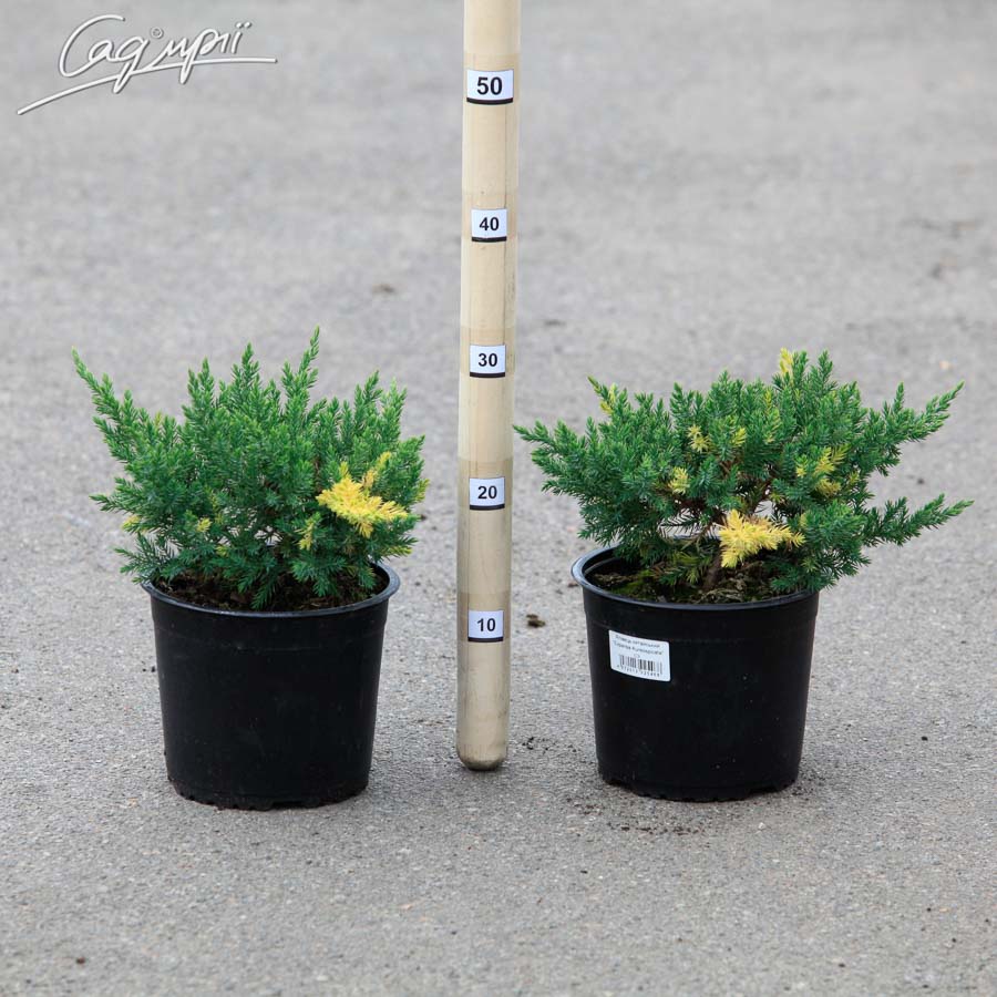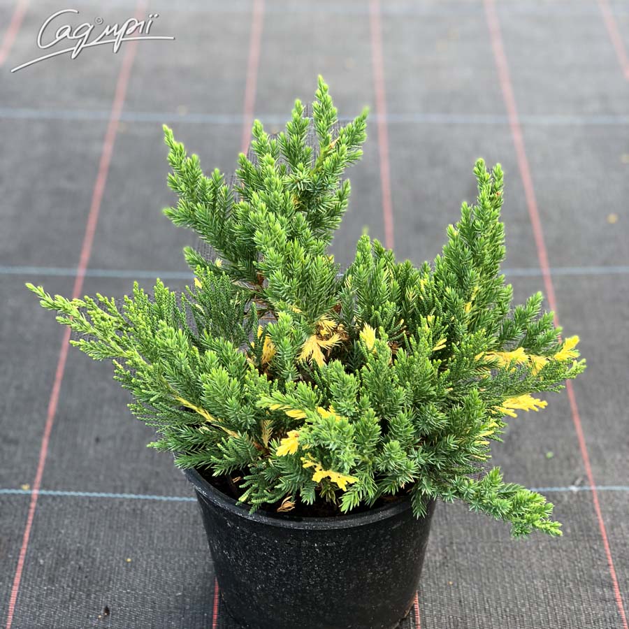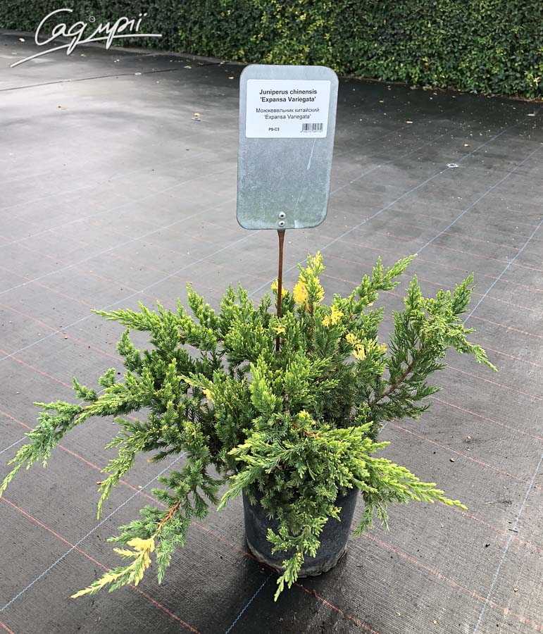 Красивий низькорослий чагарник з широкою розлогою кроною і горизонтальними, сланкими по землі пагонами. Висота 30-40 см, ширина до 1,5 м. Забарвлення крони - синьо-зелене, з мальовничо розкиданими по ній жовтувато-білими плямами. Слід уникати застійного перезволоження, бажано оберігати від прямих сонячних променів, особливо ранньою весною. Володіє високими фітонцидними властивостями. Грунти воліє легкі, нейтральні або лужні. Застосовується при влаштуванні кам'янистих садів і садів в східному стилі, також можна використовувати як грунтопокривну рослину. Найчастіше використовується як яскравий акцент на газонах і в ландшафтних композиціях.