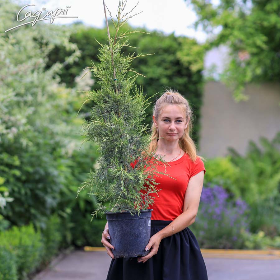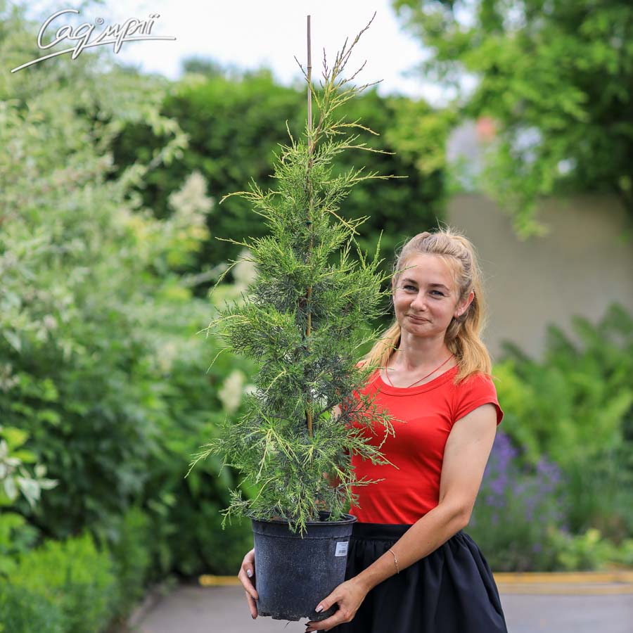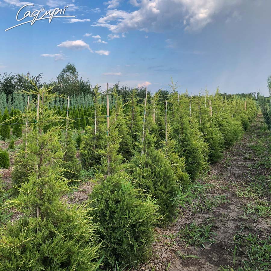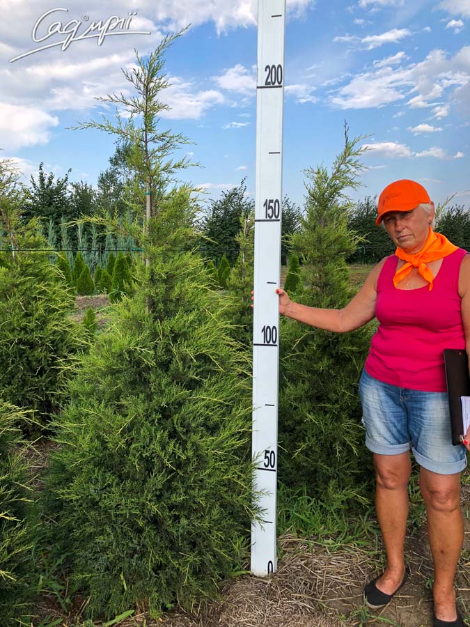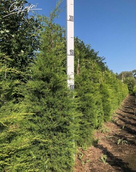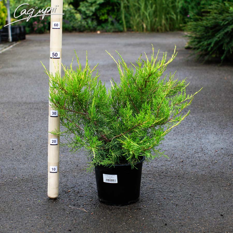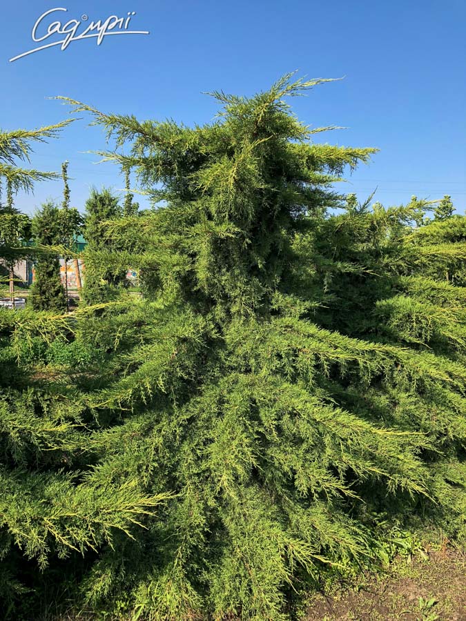 Сильнорослий чагарник ширококонусовидной форми. Висота 1,5-2 м, ширина до 2 м. Молоді пагони яскраво - золоті, контрастують зі старшою хвоєю-насичено-зеленого кольору. Пагони висхідні. До грунтів невимогливий, буде рости на всіх помірно сухих грунтах від кислих до лужних. Сонцелюбний. У тіні буде втрачати золотисте забарвлення. Морозостійкий. Рекомендується для великих садів і парків, висаджується поодиноко, в середньому ярусі композицій, куртинами.