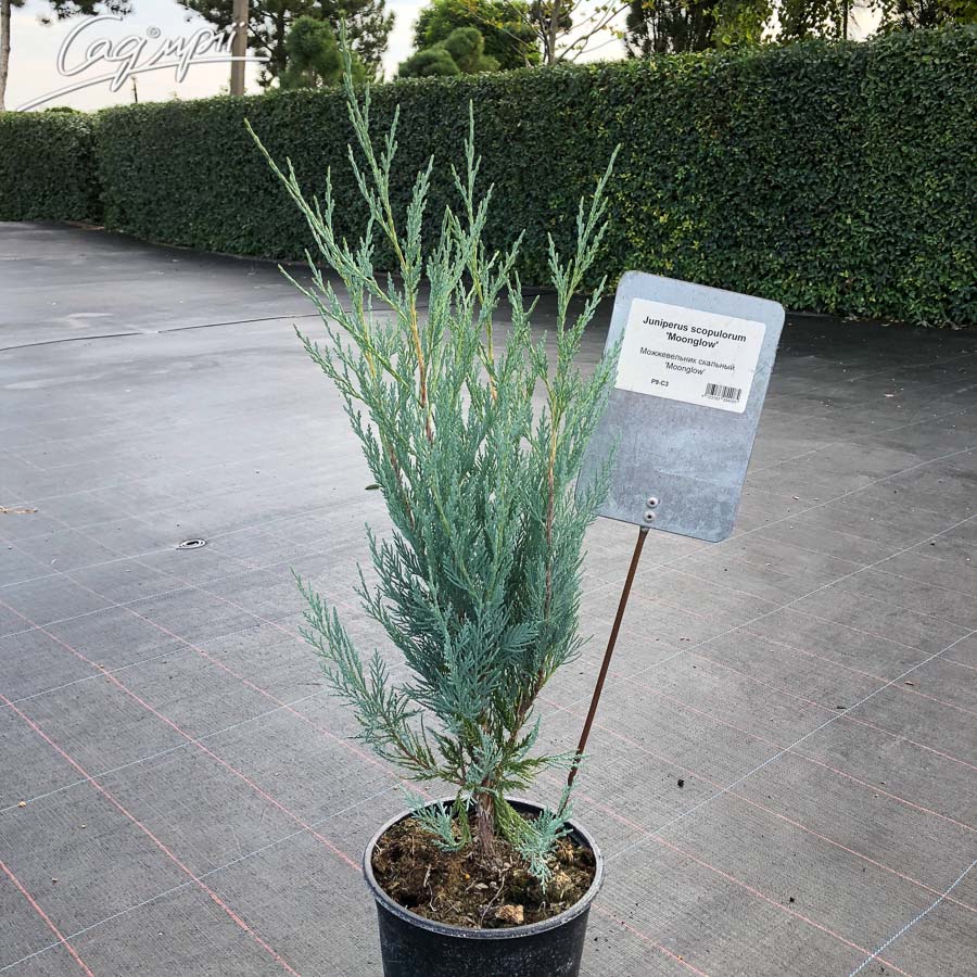 Ялівець скельний 'Moonglow' найкраще висаджувати на сонячних місцях. Рослини, вирощені в контейнері, перед посадкою необхідно ретельно полити. Посадкова яма повинна бути більше контейнера в 1,5-2 рази. При близькому заляганні грунтових вод або важкому грунті необхідно влаштувати дренаж з керамзиту або гравію шаром 20 см. Заповнити посадкову яму краще сумішшю вийнятого грунту і торфу в співвідношенні 1:1. У суміш бажано додати комплексне мінеральне добриво в співвідношенні 5 г на 1 літр суміші. Цей перехідний шар сприятиме кращому проростанню коренів в грунт. Коренева шийка рослини повинна бути на рівні землі. Посаджену рослину ретельно пролити водою. Пристовбурні кола бажано замульчувати корою або торфом. При посадці рослини з грудкою землі, необхідно внести стимулятор коренеутворення (Корневин, Радифарм), згідно з інструкцією виробника.