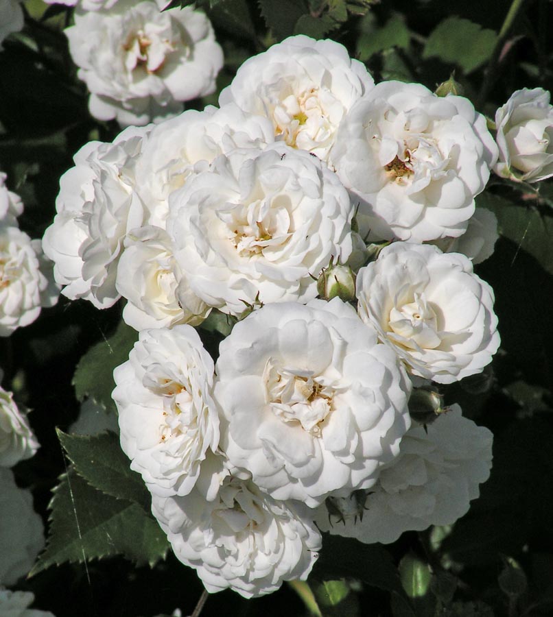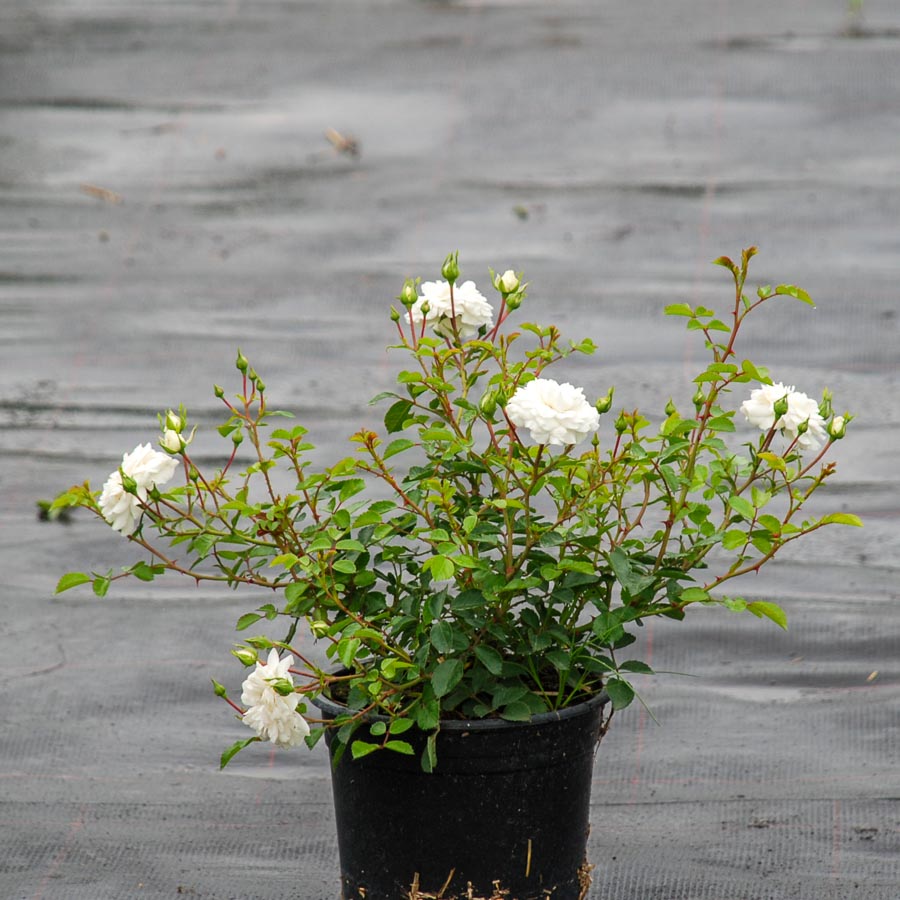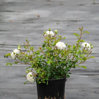 Ґрунтопокривний сорт, у висоту досягає 40-70 см, ширина 120 см.листя напівглянсові, зелені, щільні. Квітки білі, махрові, зібрані в суцвіття по 10 - 40 шт в кисті, розміром 3-5 см в діаметрі. Цвітіння рясне, зацвітає пізно, але цвіте безперервно до самих заморозків. Аромат легкий. Зимостійка, але вимагає укриття на зиму. Стійкість до захворювань висока. Сорт невибагливий, віддає перевагу сонячним місцям, виносить півтінь. Використовується в одиночних посадках і бордюрних огорожах.