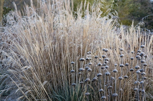 Рекомендуем только связывать высокорослые злаки на зиму, чтобы куст не распадался и не сломался от холодного ветра и снега.