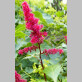Астильба арендса 'Glut'- Многолетнее травянистое растение. Густо покрытый листвой куст с тёмно-зелёными, с бронзовым отливом, блестящими листьями. Высота растения 75-80см, диаметр - 50 см. Стебли и черешки красноватые. Цветки карминно- красные, в узком, метельчатом, плотном соцветии, до 35 см длиной. Цветет августе, на протяжении 15-20 дней. Астильба отличается высокой зимостойкостью, практически не поражается болезнями и вредителями. Не любит замокания почвы, особенно после зимы. Избыток влаги может привести к загниванию корней. Бедная почва, открытое солнечное место и отсутствие полива плохо влияют на растения. Открытый солнцепек и отсутствие дождей могут погубить растение.