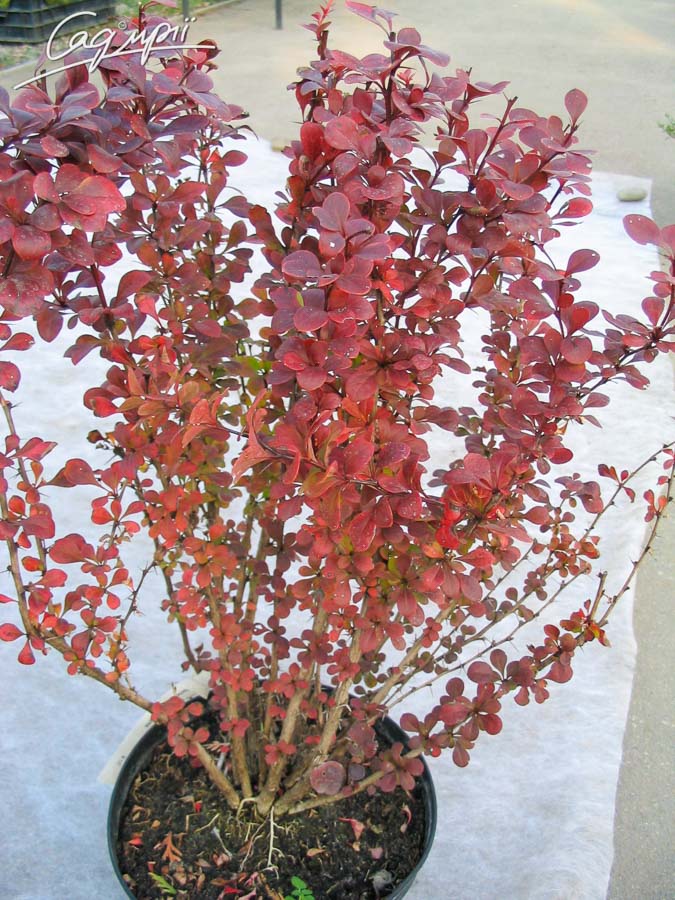 Листопадный кустарник с хорошо разветвлённой кроной. Высота 1,5 м, ширина до 1,5 м. Основные ветви вертикальные, боковые - дугообразно отклонённые. Побеги светло красные, гранёные, с одиночными шипами. Листья очередные, яйцевидные, длиной до 3,5 см., пурпурно - красные или красно - коричневые (в зависимости от освещённости). Осенняя окраска ярко красная. Цветёт в мае жёлто - красными цветами, собранными в кисти. Плоды кораллово - красные, эллиптические, на кусте держатся до зимы. Корневая система хорошо разветвлена, с большим количеством тонких корней. Почвы предпочитает свежие от слаблкислых до щелочных. Не выносит замокания. Морозостоек, устойчив к гродским условиям, переносит временную засуху. Используют в солитерных и групповых посадках, в альпинариях, в качестве стриженых или свободных живых изгородей и бордюров.
