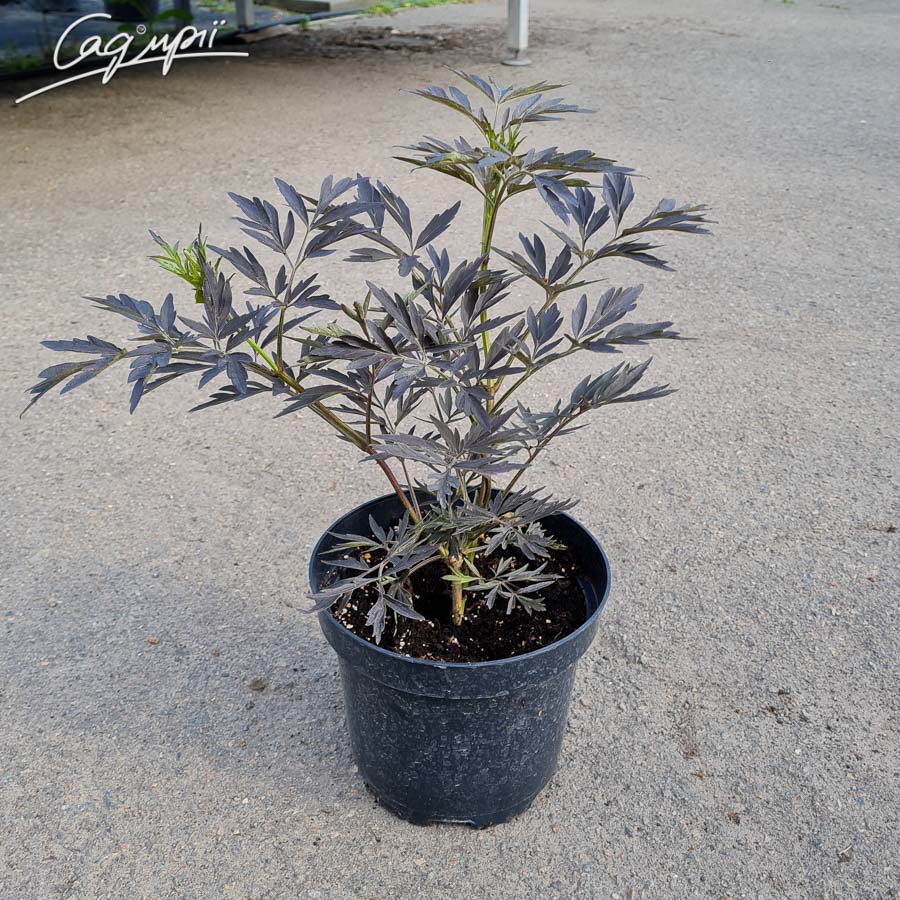 Большой пряморастущий кустарник, иногда небольшое дерево с куполовидной кроной. Достигает 3 м высоту. Листья темно-пурпурного цвета, сложные, с отдельными резными листочками. В сочетании с розовыми цветками дает в мае изумительный эффект. Плоды черные, блестящие, шаровидные. Кустарник теплолюбивый, требует плодородной и влажной почвы, хорошо переносит сухость воздуха. С успехом используют для созданий одиночных и групповых посадок, композиций в парках и в больших садах.