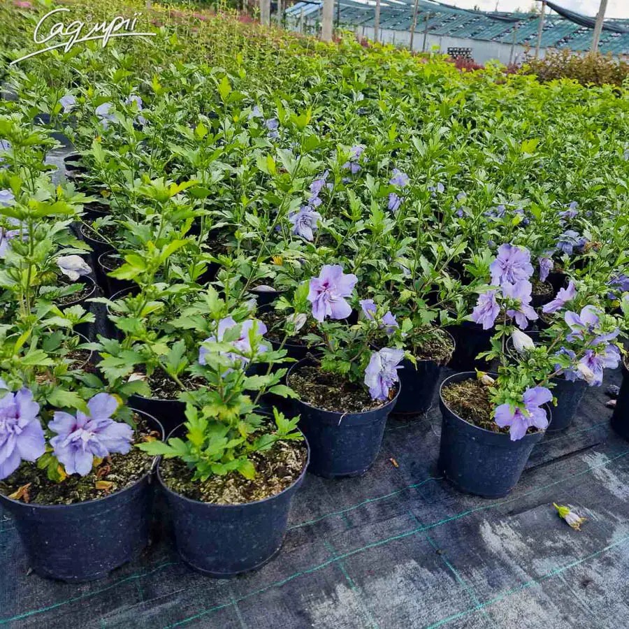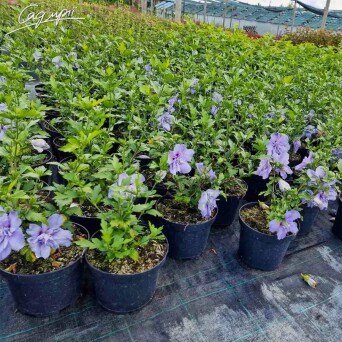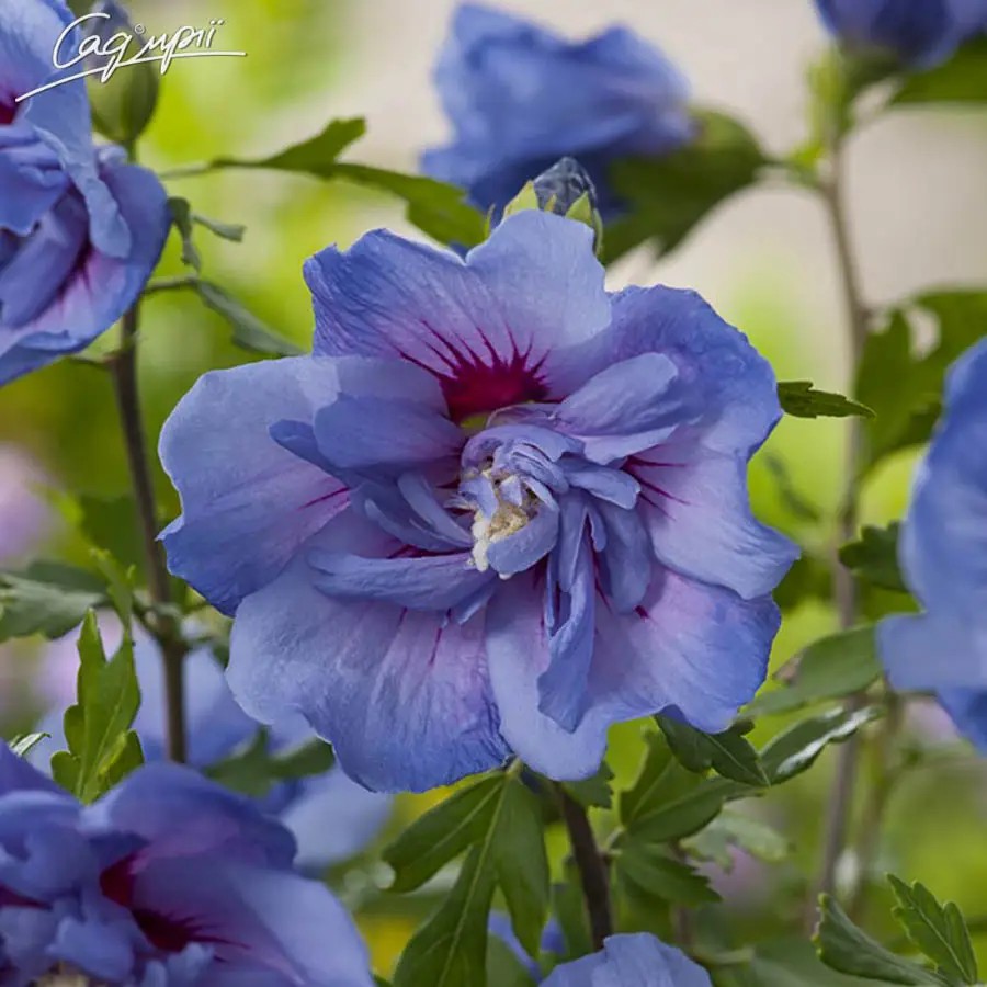 Кустарник с голубыми махровыми соцветиями и длительным сроком цветения (с июля до конца сентября). Размер соцветий может достигать 9 см. Декоративная крона овальной формы, достигает около 2 м в высоту. Скорость роста - около 30 см за сезон. Листья темно-зеленые весь теплый сезон, осенью желтеют и опадают. Среди достоинств кустарника - обильное цветение (множество бутонов в летний период раскрываются каждый день), устойчивость к болезням и вредителям, универсальность в применении (подходит как для больших, так и для малых садов, сочетается с растениями разной цветовой гаммы). Подходит для высадки как одиночно так и в группах. За счет компактного размера может выращиваться в малых садах. Хорошо смотрится в одной композиции с миниатюрными розами, шалфеем, лавандой. Эффектно смотрится в живой изгороди и в букетной посадке, на фоне вечнозеленых хвойных растений.