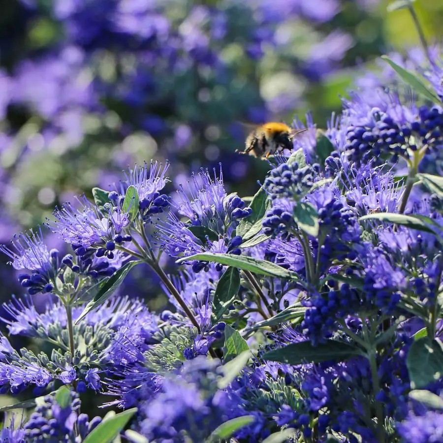 Кариоптерис кладонский Кью блу привлекает в сад бабочек.