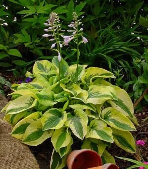 Успешно разноцветные листья хосты используют во флористических композициях.