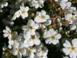 Красивоцветущий компактный кустарник с густой кроной, цветки белые. Крона округлая, подушковидная. Характеризуется обильным длительным цветением с середины июня до октября. Мелкие листья состоят из 5 листочков весной нежно-зеленых, летом зеленых с серебристым оттенком из-за ворсистого опушения. Быстрорастущий сорт. Высота до 0,5 -0,8 м. ширина до 1,2 м. Предпочитает плодородные легкие почвы. Светолюбива. Морозоустойчива, устойчиво переносит городские условия и обрезку, чувствительна к засухе. Используется как ординар, в группах, бордюрах, альпинариях.