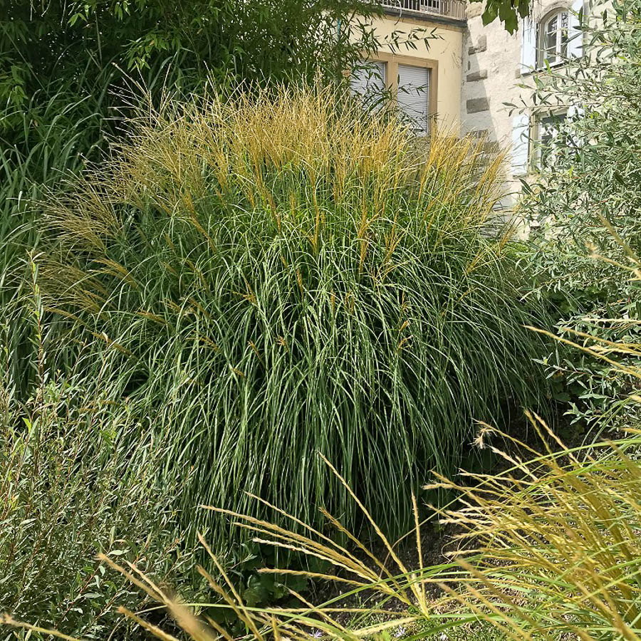 Компактный сорт с жесткими, сизо-зелеными листьями и цветками в виде метелок, меняющими оттенок от бронзового к белому. соцветия возвышаются над листьями, придавая растению особую привлекательность. Предпочитает солнечные места и рыхлые, умеренно влажные почвы.
