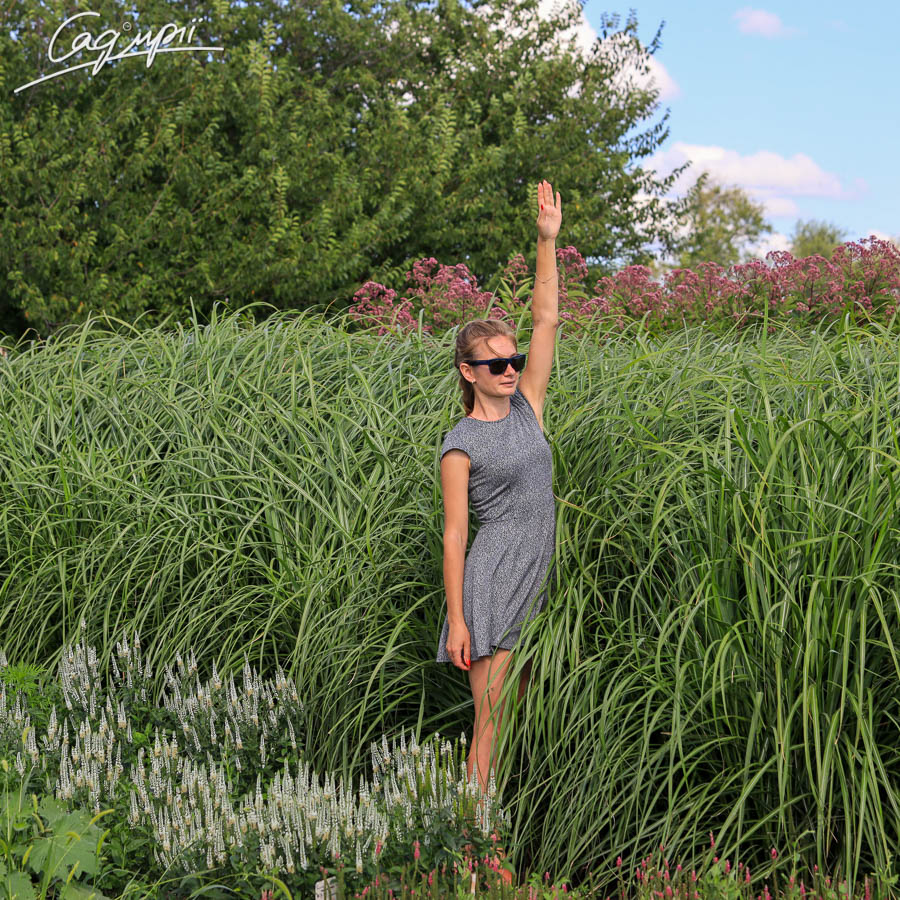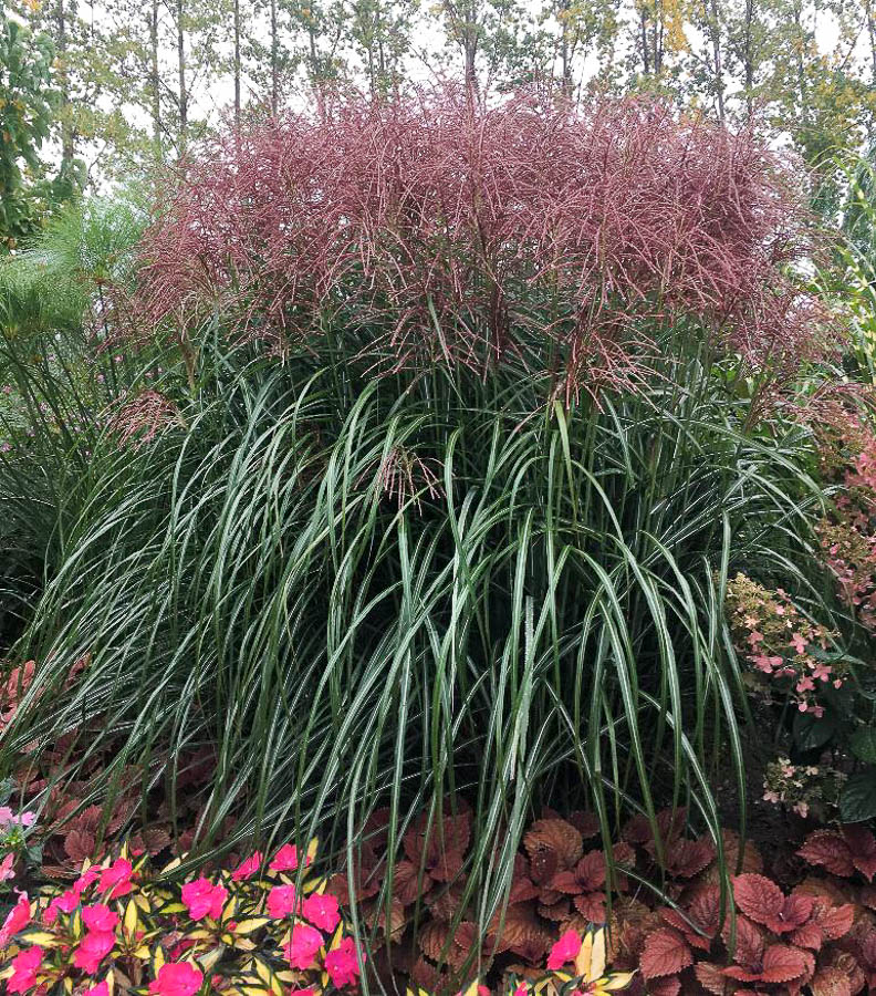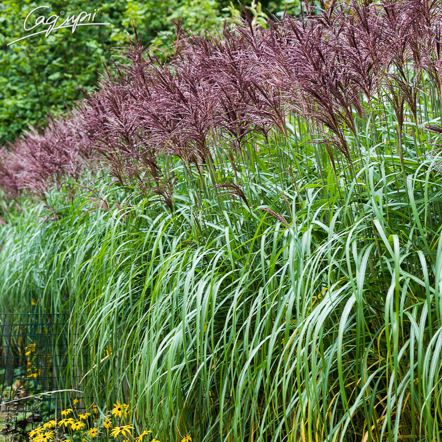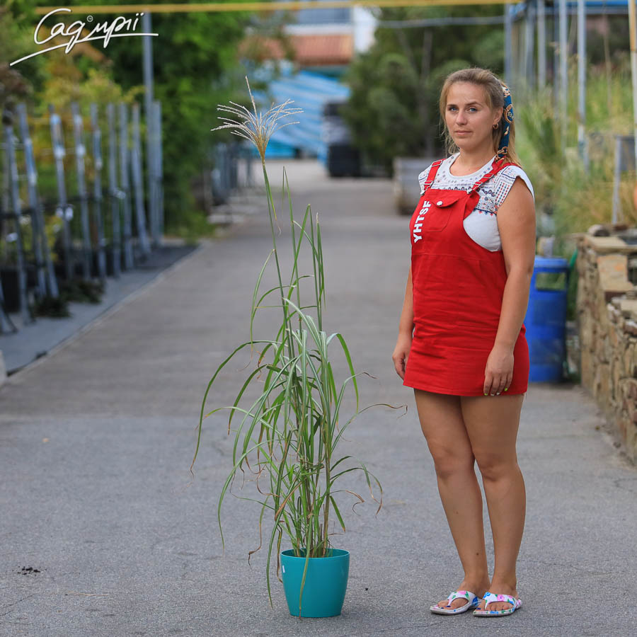 Данный сорт очень привлекателен: узкие листья со светлой жилкой по центру, красивые метелки с розоватым оттенком расположены на прочных стеблях. Соцветия со временем светлеют и становятся очень пушистыми.