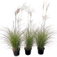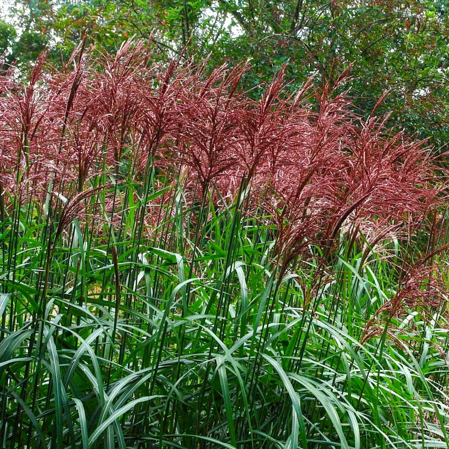 Мискантус китайский ‘Serengeti’ (Miscanthus sinensis ‘Serengeti’) — декоративный злак с плотной куртиной и эффектной сезонной игрой цвета. Весной дает ярко-красные побеги, летом имеет зеленые листья с серебристо-белой центральной жилкой, а ближе к осени часто появляются пурпурные/красные оттенки. Цветет с конца лета до осени: сначала соцветия могут быть медно-красные/розово-пурпурные, со временем светлеют до кремово-бежевых. Размеры растения - до 1,5 м, ширина до 0,8 м.