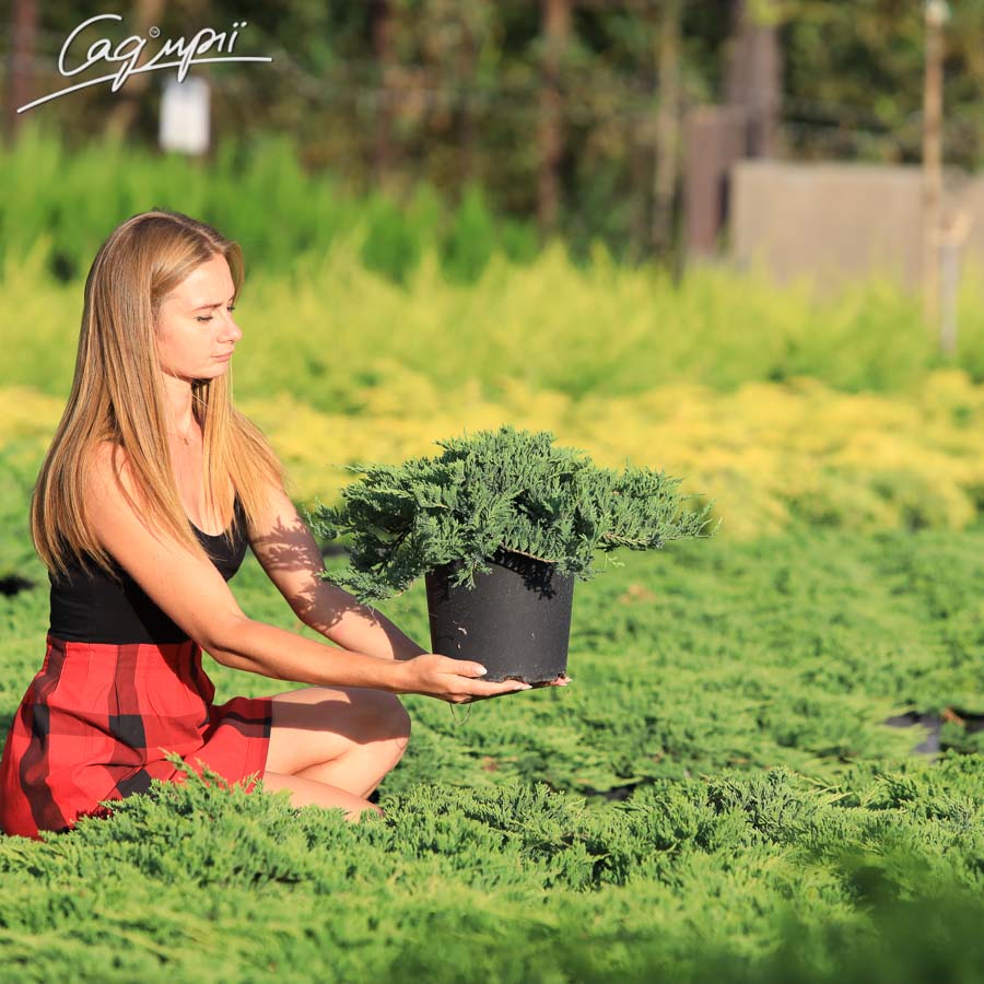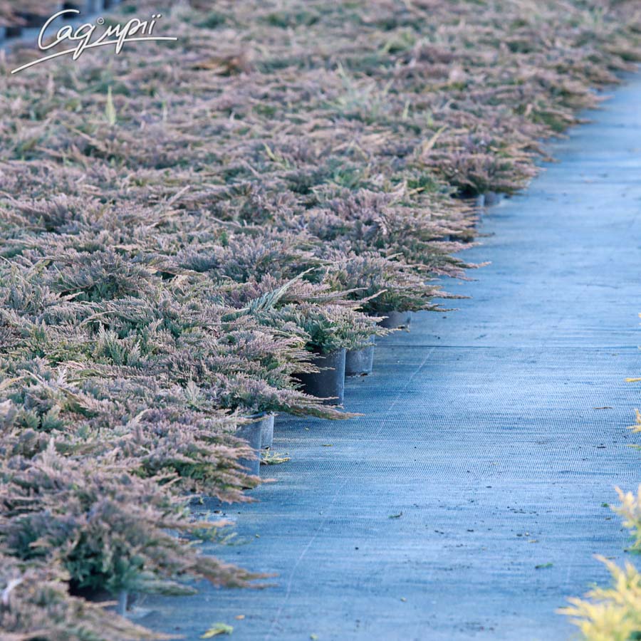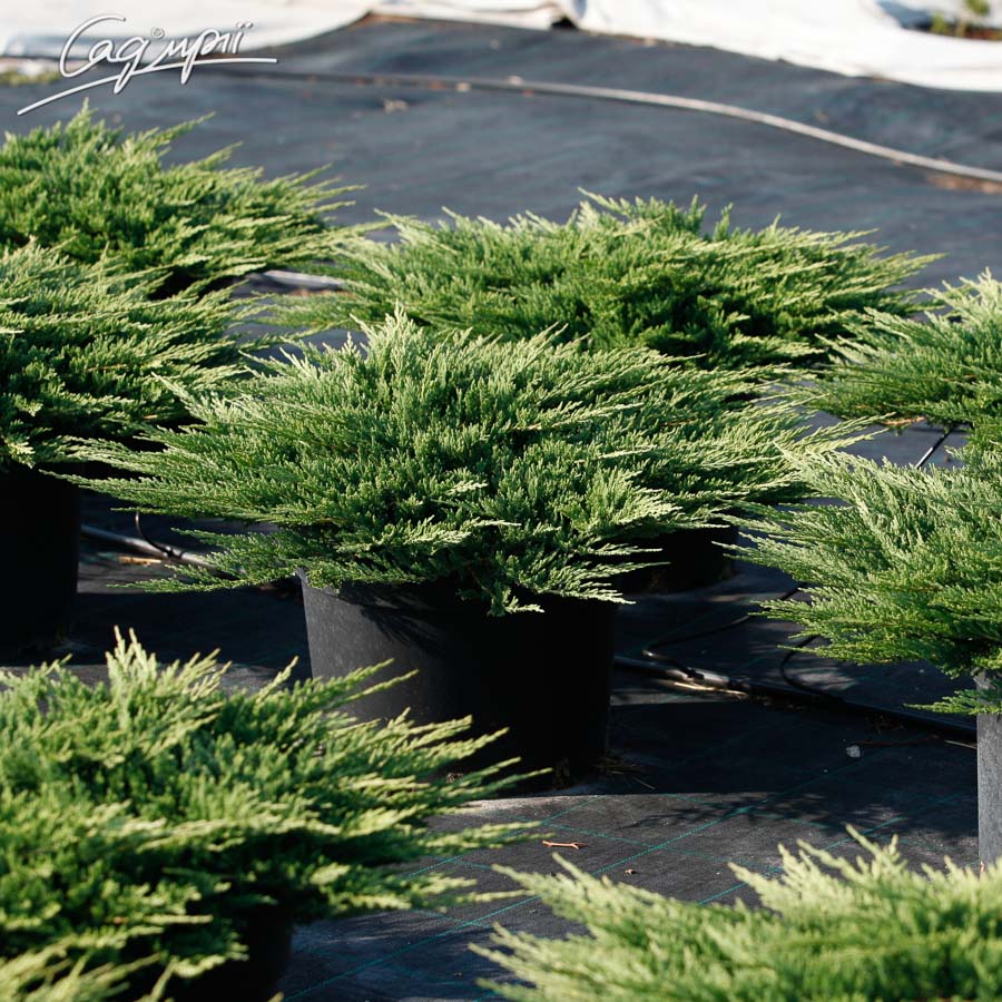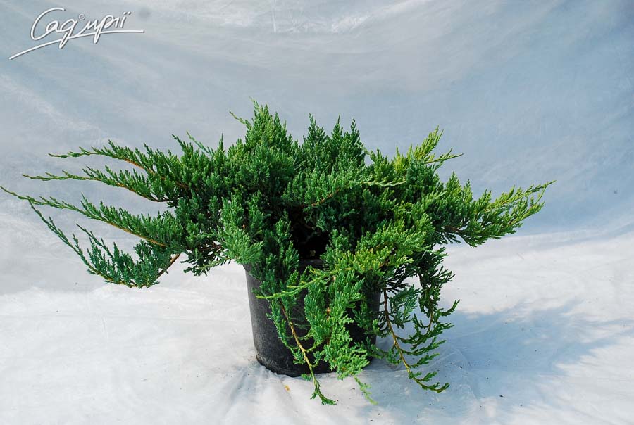 Распростертый плоский кустарник, густо разветвлённый, образует широкие ковры. Форма кроны подушкообразная. Высота около 30 см, ширина – до 2,5 м. Медленнорастущий сорт. Хвоя чешуйчатая, зелёного цвета летом и фиолетового оттенка - зимой. Солнцелюбив, неплохо переносит полутень. Хорошо растет на свежих, хорошо дренированных почвах, лучше развивается на слабокислых суглинистых или песчаных почвах Не переносит застоя влаги. Особенно зимостоек, вместе с тем хорошо переносит летнюю жару, небольшое засоление, легко акклиматизируется. С помощью этого сорта создают можжевеловые газоны, используют для высадки на откосах и склонах для защиты от эрозии почвы, в качестве контейнерной культуры для озеленения террас, крыш, лоджий и балконов.