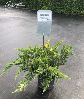 Красивый низкорослый кустарник с широкой раскидистой кроной и горизонтальными, стелющимися по земле побегами. Высота 30-40 см, ширина до 1,5 м. Окраска кроны - сине-зеленая, с живописно разбросанными по ней желтовато-белыми пятнами. Следует избегать застойного переувлажнения, желательно оберегать от прямых солнечных лучей, особенно ранней весной. Обладает высокими фитонцидныими свойствами. Почвы предпочитает легкие, нейтральные либо щелочные. Применяется при устройстве каменистых садов и садов в восточном стиле, также можно использовать как почвопокровное растение. Зачастую используется как яркий акцент на газонах и в ландшафтных композициях.