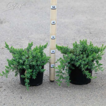 Плотный вечнозеленый кустарник, отличный почвопокровник, может также применяться для озеленения откосов и даже невысоких вертикальных стен. К 10 годам достигает высоты 0,3м, ширина 1,5 м.. Ветки этого сорта длинные, от центра куста отходят горизонтально, формируя плоскую асимметричную крону. Морозостоек. Хвоя растения колючая, изумрудно-зеленого цвета, с синеватым отливом, зимой немного желтоватые. Предпочитает открытые солнечные места.