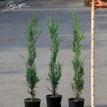 Строго вертикально растущая, крайне узкая колоновидная форма, с вертикально - отвесными ветками и густыми прилегающими побегами. Хвоя игольчатая или чешуйчатая, очень красивого серовато – голубого цвета. Высота 6 - 8 м, ширина – до 1 м. Скорость роста высокая; годовой прирост в высоту 20 см, в ширину до 5 см. Хвоя чешуйчатая, красивого серовато-голубого цвета. Солнцелюбив. Хорошо растет на свежих, хорошо дренированных, не слишком плодородных, почвах, выносит засоление. Зимостоек. Используется в качестве вертикального элемента в альпинариях, на газонах и в контрастных ландшафтных композициях. Идеальное растение для дикорастущей живой изгороди, которая практически не требует ухода.