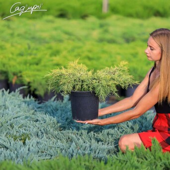 Можжевельник средний 'King of Spring' лучше всего высаживать на солнечных местах. Растение из контейнера перед посадкой следует тщательно пролить водой. Подготовить посадочную яму в 1,5-2 раза больше корневой системы. Для лучшей приживаемости желательно заменить почву на питательную смесь: песок, дерновая земля, торф, соотношение 1:1:1., или взять готовую почвосмесь (торф) для хвойных растений, перемешать с почвой 1:1. Можно добавить комплексное минеральное удобрение. Этот переходный слой будет способствовать лучшему прорастанию корней в почву. Если почва тяжёлая или близко залегают грунтовые воды, обязателен дренаж из гравия или битого кирпича слоем 20 см. При посадке корневая шейка можжевельника должна быть на уровне земли.