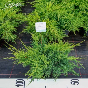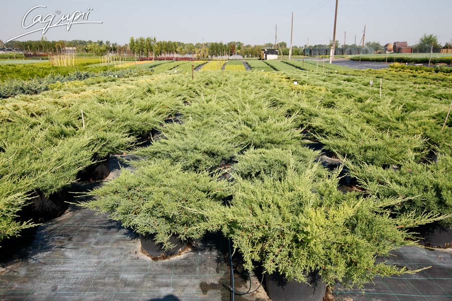 Вечнозелёный широко раскидистый и вместе с тем компактный кустарник с воронковидными ветвями, нижние ветви лежат горизонтально на земле. Хвоя частично чешуйчатая, остальная игольчатая, голубовато – зелёного оттенка. Скорость роста умеренная, в высоту достигает 0,5 - 0,8 м., в ширину –2,5 - 3 м. Солнцелюбивое растение, вместе с тем теневыносливо. К почвам нетребователен, растёт на всех видах почв, от сухих до влажных, кислых и щелочных. Очень морозостойкий сорт, устойчив к городскому климату и вредным выбросам, переносит сухие полутенистые местоположения под деревьями, хорошо стрижётся, выносит даже сильную обрезку. Используется для одиночных посадок, посадок большими куртинами, для подбивки вертикальных форм. Подходит для невысоких живых изгородей.