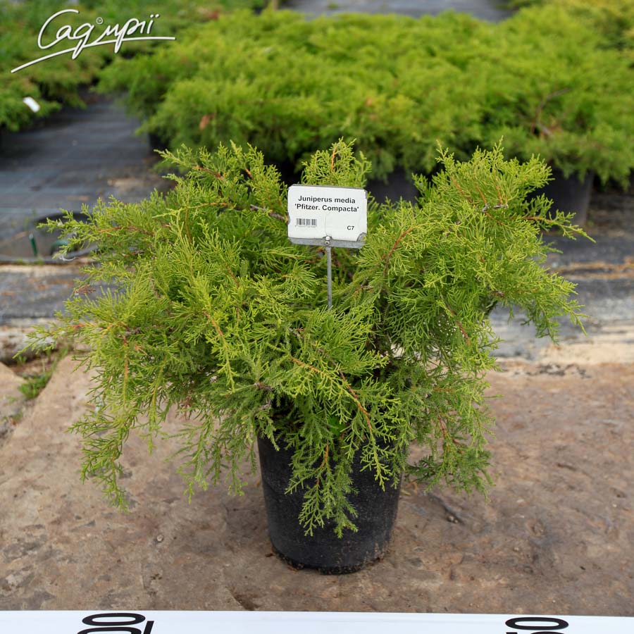 Можжевельник средний 'Pfizeriana Compacta' лучше всего высаживать на солнечных местах. Растения выращенные в контейнере перед посадкой необходимо тщательно полить. Посадочная яма должна быть больше контейнера в 1,5-2 раза. При близком залегании грунтовых вод или тяжелой почве необходимо устроить дренаж из керамзита или гравия слоем 20 см. Заполнить посадочную яму лучше смесью вынутого грунта и торфа в соотношении 1:1. В смесь желательно добавить комплексное минеральное удобрение в соотношении 5 гр. на 1 литр смеси. Этот переходный слой будет способствовать лучшему прорастанию корней в почву. Корневая шейка растения должна быть на уровне земли. Посаженное растение тщательно пролить водой. Приствольный круг желательно замульчировать корой или торфом.