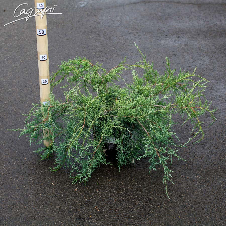 Хвойный кустарник с раскидистой кроной. Достигает высоты 0,5м, ширины 2,5м. Хвоя образует плотные куртины, из которых выступают тонкие молодые побеги. Хвоя голубовато-серебристая, имеет чешуйчатую структуру, не колючая. Предпочитает солнечные места или полутень. Хорошо растет на дренированных влажных супесях. Применяется одиночно и в группах в рокариях, альпинариях, для посадки в контейнерах.