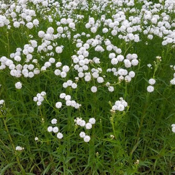 Общее описаниеТысячелистник птармика Noblesse® - травянистый многолетник, достигающий 80-100см высоты. Стебли многочисленные, прямые покрытые перисто-рассеченными, зелеными листьями. На вершинах стеблей расположены щетковидные соцветия, белого цвета немахровые до 8 см, устойчивы во время длительного цветения. Период цветения начинается в июле и длится до начала сентября. Один из лучших сортов, достоин быть в арсенале любого цветовода, так как он быстро наращивает зеленую массу и очень красив, в момент своего цветения. Куст раскидистый, корневая система ползучая, растение агрессивное.