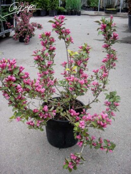 Необычный сорт вейгелы с крайне оригинальным цветением: лепестки постепенно меняют окраску с белоснежной на нежно-розоватую, а в конце цветения приобретают насыщенный красно-розовый оттенок; Богатство цветовой палитры (одновременно на кусте могут “красоваться” гроздья соцветий разных оттенков) и длительность цветения делают этот сорт “желанным гостем” в наших садах. Взрослый кустарник данного сорта достигает 120-150 см в высоту и до 2 м в диаметре. Крона - раскидистая, округлая. Листва - темно-зеленая, декоративна весь теплый сезон. Осенняя окраска - желтовато-зеленая. С наступлением холодов листва опадает. Пик декоративности растения приходится на май-июнь: именно в это время куст обильно покрывается соцветиями. Возможно также повторное цветение в конце лета-начале осени. Вейгела 'Feline Courtamon' устойчива к болезням и вредителям, быстро восстанавливается после обрезки. Хорошо выглядит как в одиночной, так и в групповой посадке. Подходит для создания невысоких бордюров или свободнорастущих живых изгородей (например, на фоне газона или пруда), а также для высадки на альпийской горке. Будет гармонично смотреться в одной композиции с сиренью, жасмином, метельчатыми гортензиями светлых оттенков.