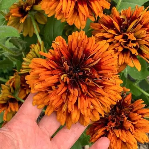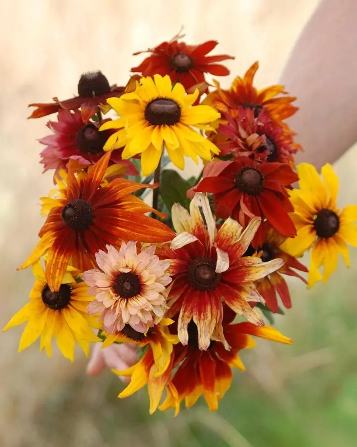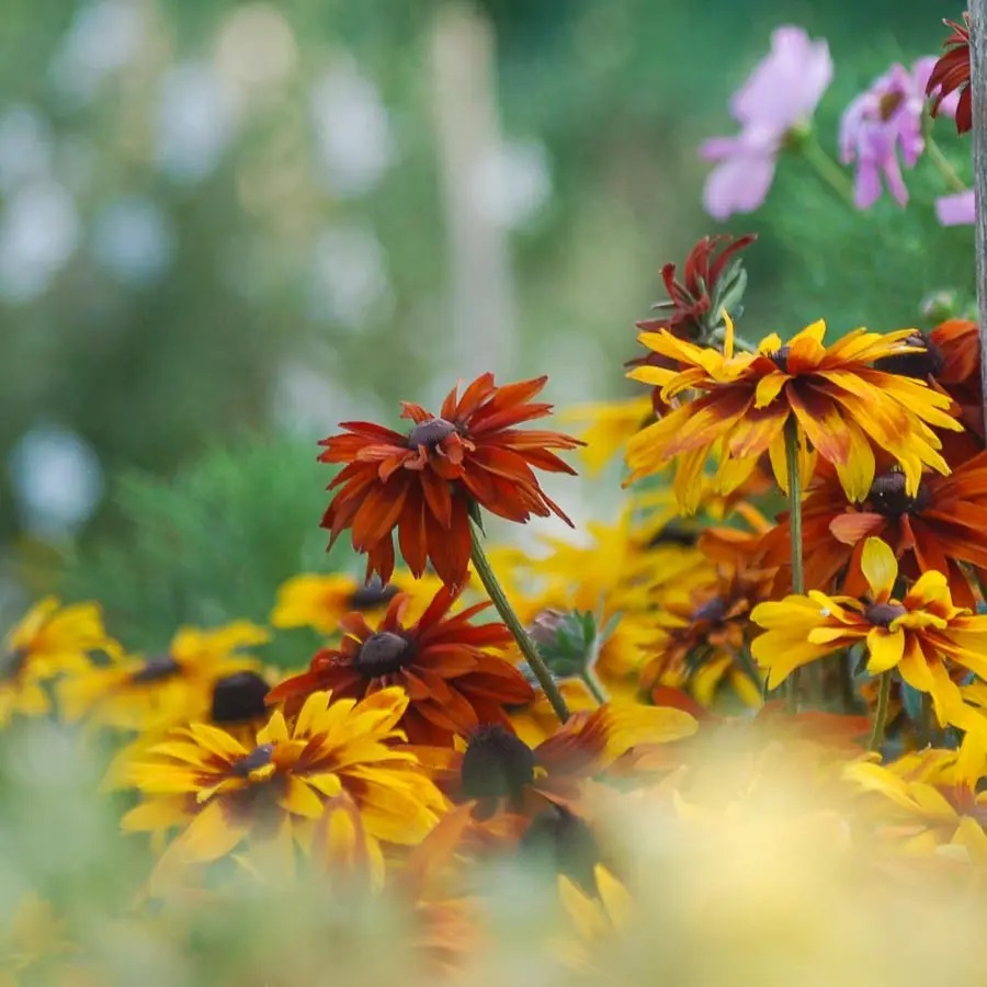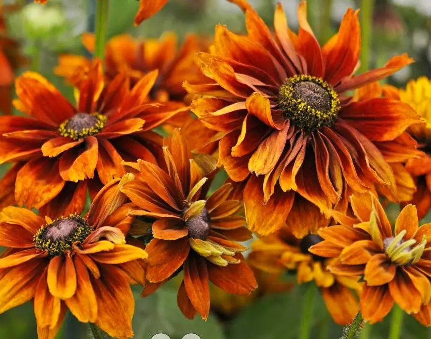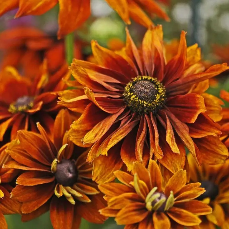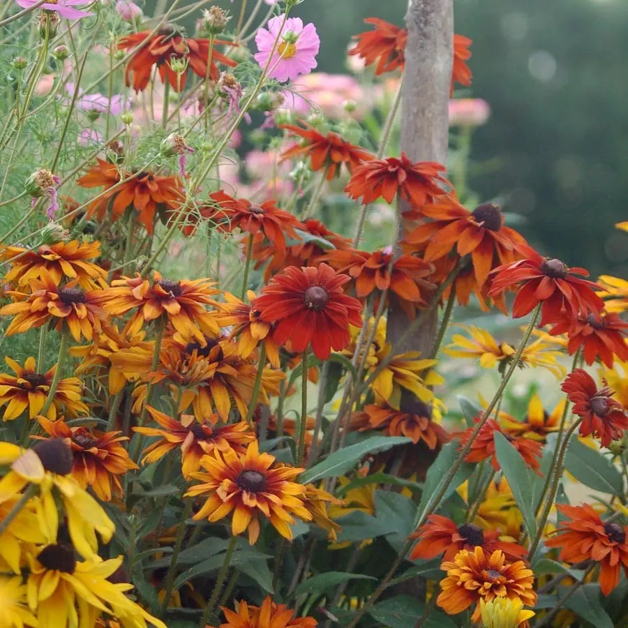 Квітування рудбекії «Cherokee Sunset» зазвичай дуже рясне і триває з початку літа до самих приморозків. Розмір квітів сягає 7-10 см у діаметрі!