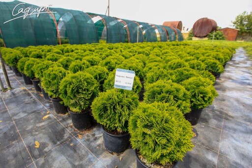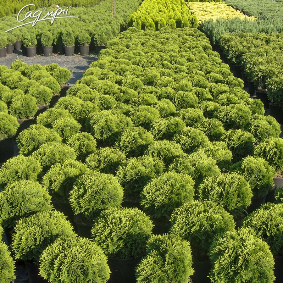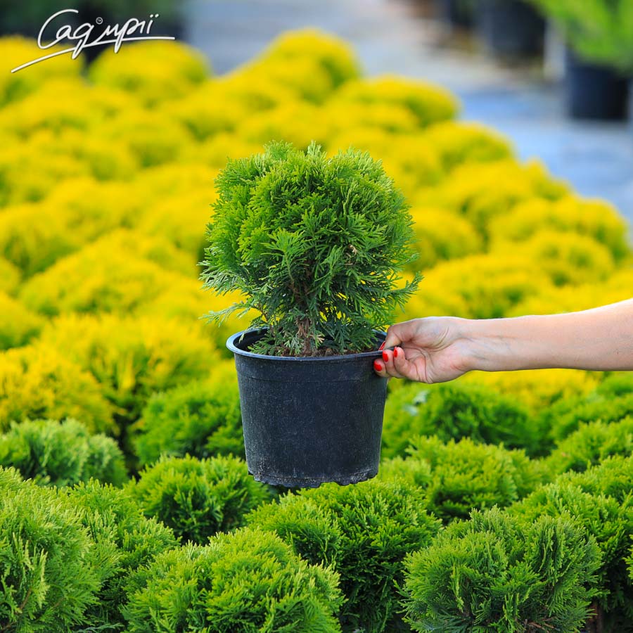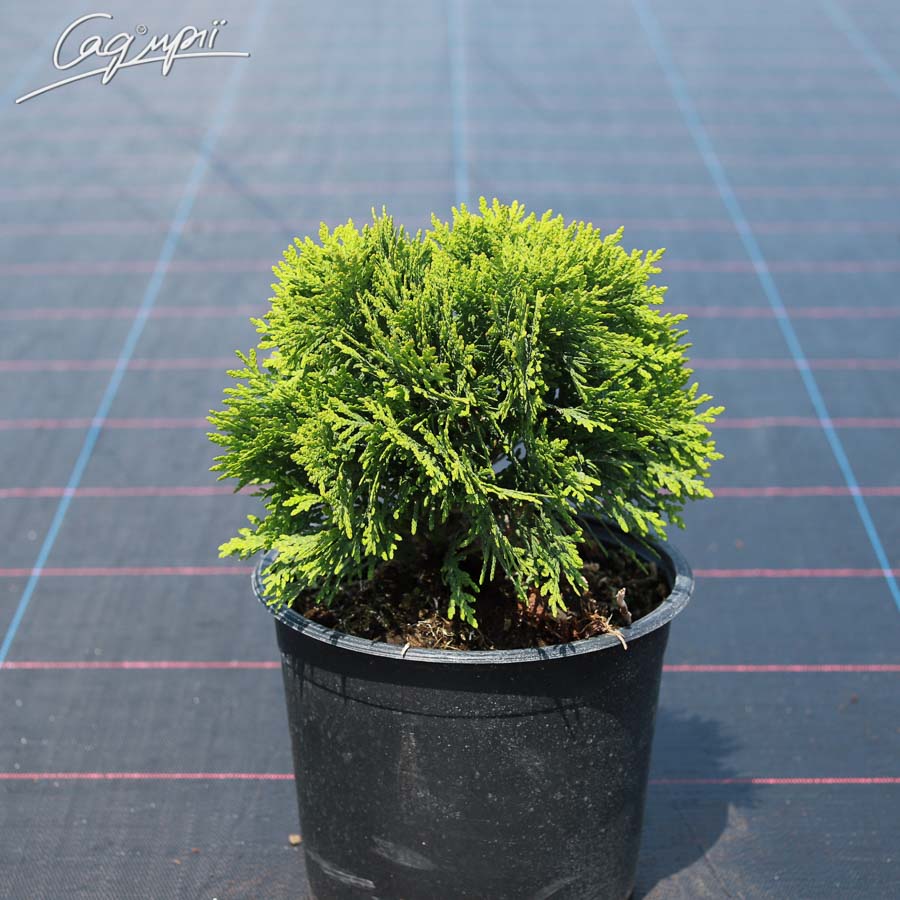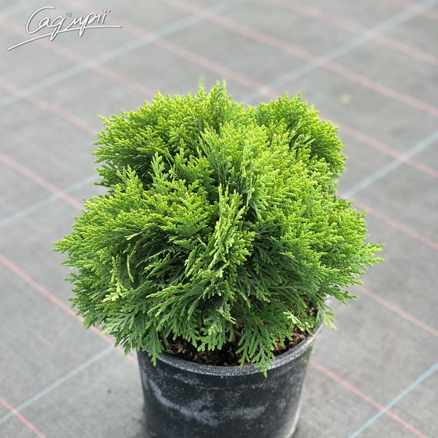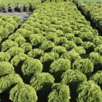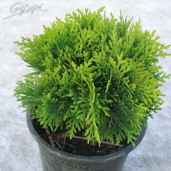 Вічнозелений невеликий чагарник з округлою, щільною кроною, тонкими хвоинками і вертикальними гілочками, дуже медленнорастущий. Висота 0,6-0,8 м, ширина до 1 м. Хвоя луската, дуже густо розташована, блискуча свіжо - зелена, взимку коричнево - зелена. Росте на всіх свіжих або вологих (сирих), родючих грунтах, від кислих до лужних. Морозостійка, тіньовитривала, невимоглива і дуже здорова, виносить міські умови. Використовується в складі композицій як кулястий елемент, для створення низькорослих живоплотів і алей.