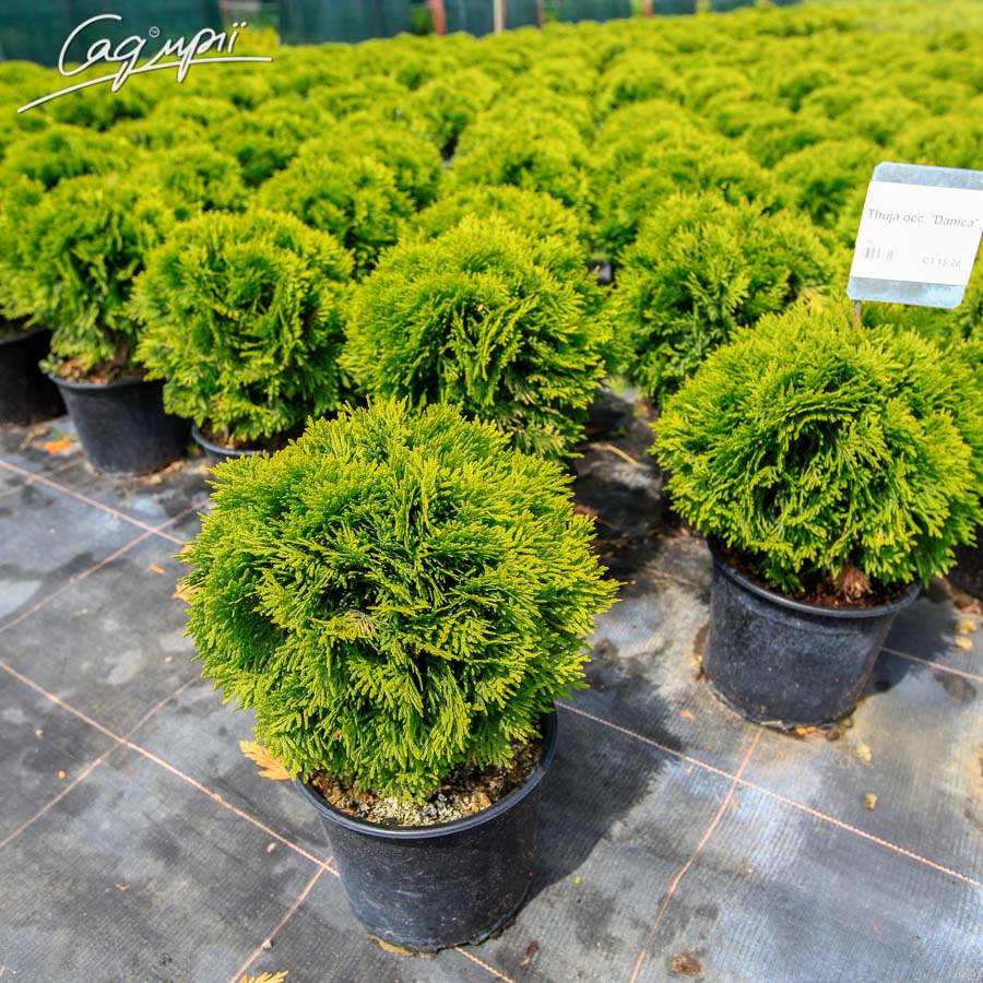 Тую західну 'Danica' найкраще висаджувати на сонячних місцях або в півтіні. Рослини вирощені в контейнері перед посадкою необхідно ретельно полити. Посадкова яма повинна бути більше контейнера в 1,5-2 рази. При близькому заляганні грунтових вод або важкому грунті необхідно влаштувати дренаж з керамзиту або гравію шаром 20 см.заповнити посадкову яму краще сумішшю вийнятого грунту і торфу в співвідношенні 1:1. У суміш бажано додати комплексне мінеральне добриво в співвідношенні 5 гр. на 1 літр суміші. Цей перехідний шар сприятиме кращому проростанню коренів в грунт. Коренева шийка рослини повинна бути на рівні землі. Посаджене рослина ретельно пролити водою. Пристовбурні кола бажано замульчувати корою або торфом.
