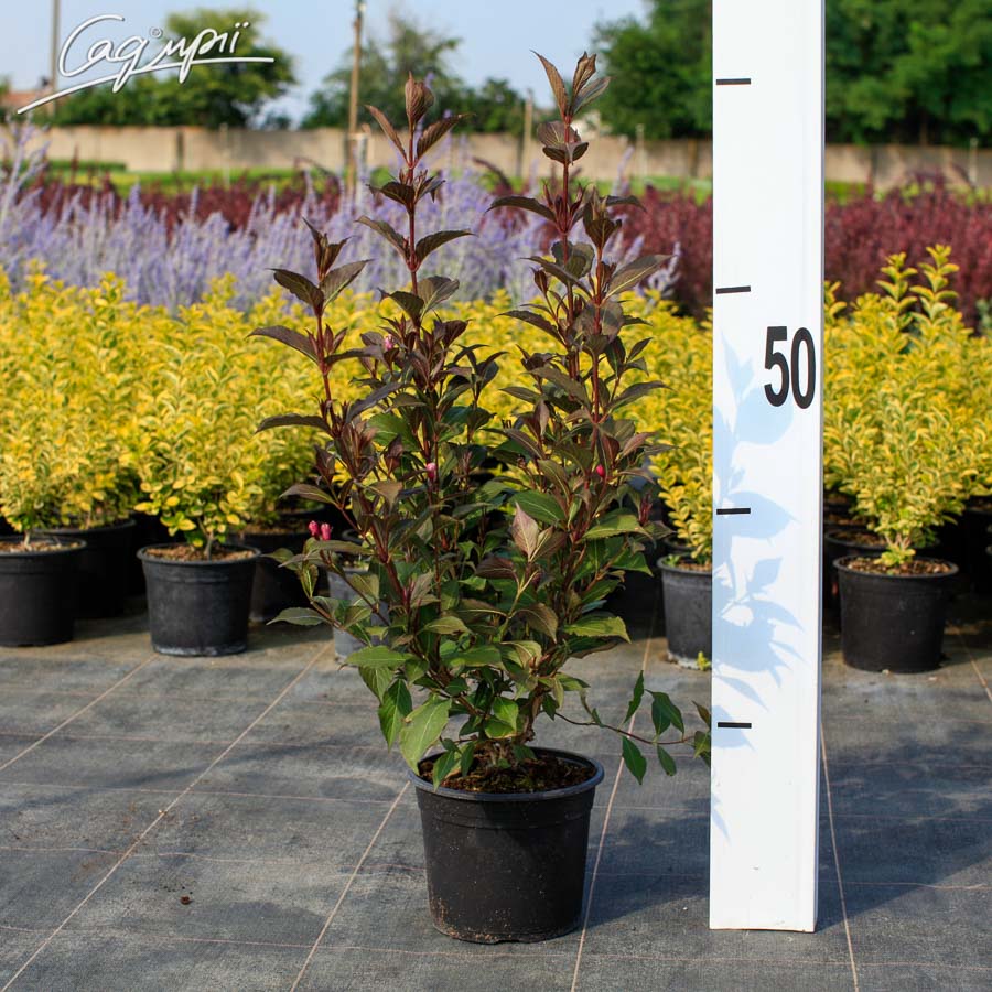 Вейгелу квітучу 'Nana Purpurea' найкраще висаджувати на сонячних місцях або в легкій півтіні. При посадці в глибокій тіні рослина не буде так рясно цвісти, втратить насичене забарвлення листя. Рослини, вирощені в контейнері, перед посадкою необхідно ретельно полити. Посадкова яма повинна бути більше контейнера в 1,5-2 рази. При близькому заляганні грунтових вод або важкому грунті необхідно влаштувати дренаж з керамзиту або гравію шаром 20 см. Заповнити посадкову яму краще сумішшю вийнятого грунту і торфу в співвідношенні 1:1. У суміш бажано додати комплексне мінеральне добриво в співвідношенні 5 г на 1 літр суміші. Цей перехідний шар сприятиме кращому проростанню коренів в грунт. Коренева шийка рослини повинна бути на рівні землі. Посаджену рослину ретельно пролити водою. Пристовбурні кола бажано замульчувати корою або торфом.